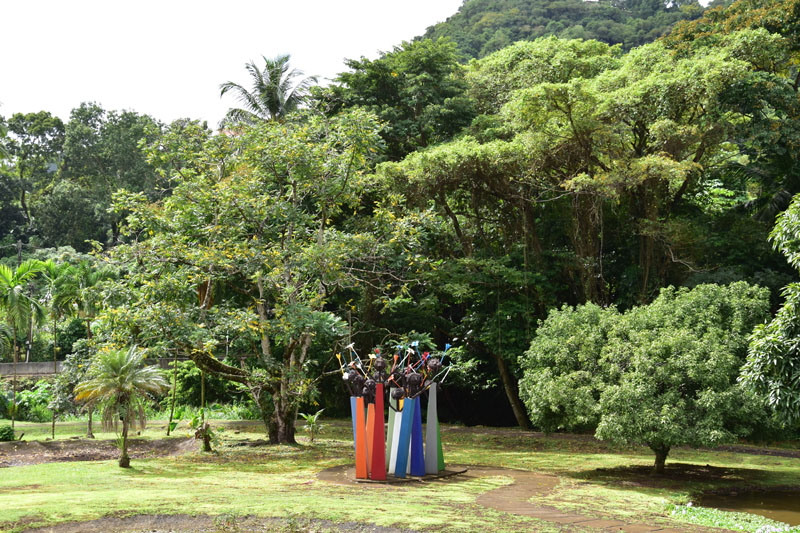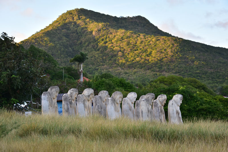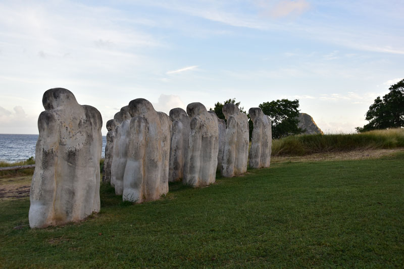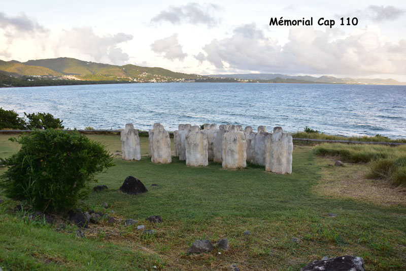 Dernier stop avant de rentrer : Le mémorial Cap 110 de Laurent Valère, situé Anse Cafard, fut édifié en 1998, sur le territoire et à l’initiative de la ville du Diamant, à l’occasion du 150ème anniversaire de l’abolition de l’esclavage. Le concepteur, Laurent Valère, est un artiste martiniquais né en 1959. Le site a été choisi en hommage aux victimes du dernier naufrage de navire négrier de l’histoire de la Martinique. Aux abords de l’Anse Cafard, un navire transportant des esclaves s’échoua en pleine tempête sur les rochers de la côte la nuit du 8 avril 1830, alors que la traite avait été déclarée illégale. Le bateau fut entièrement détruit, son nom et sa nationalité jamais établis. Sur près de 300 individus, il y eut 86 rescapés : 46 cadavres furent repêchés, dont les corps furent inhumés au cimetière.
