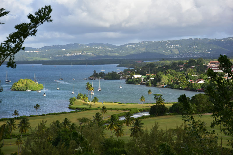 Après un temps de repos sous notre pergola, nous avons repris la voiture pour faire un petit circuit sur la presqu’île des Trois-Îlets, la route des anses. Cette route est bordée d’une succession de baies et de plages, parmi les plus touristiques de l’île, du coup il y a tellement de monde (même en ce moment) qu’il est presque impossible de trouver un endroit où se garer : ce n’est pas faute d’avoir essayer mais nous avons dû abdiquer ! Nous n’avons donc pas pu accéder à la Pointe du Bout. Nous avons traversé les Trois-Îlets, très joli village, mais nous ne nous sommes pas arrêtés, toujours pour la même raison. Nous referons cette partie un autre jour, en partant de bonne heure le matin et ainsi, nous aurons aussi le temps d’aller (re)visiter La Pagerie afin de faire un petit coucou à Joséphine…