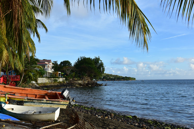 Nous avons continué notre route vers la Pointe du Diamant en nous arrêtant aux Anses d’Arlet, puis à Petite Anse (un peu moins courues que du côté des Trois-Îlets). Le Rocher est vraiment tout près de la pointe, c’est impressionnant.