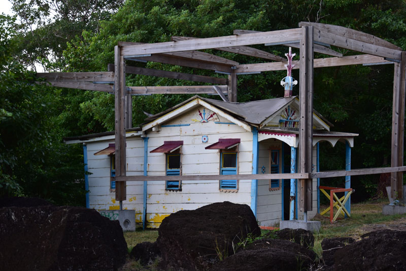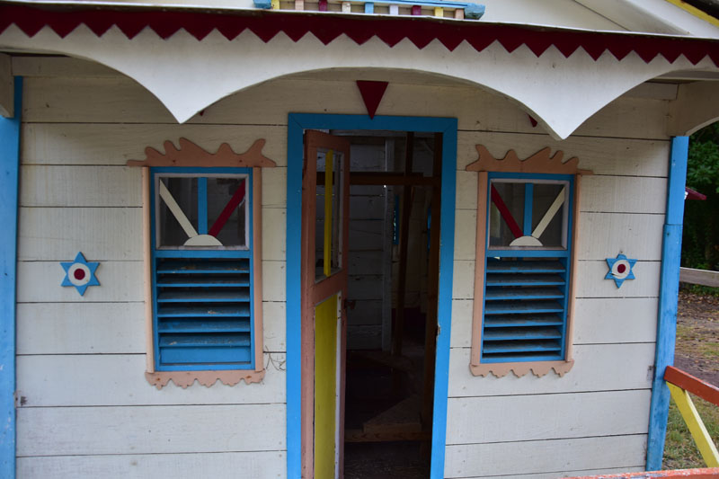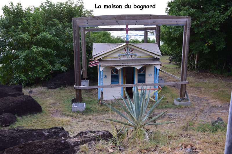 Nous avons fait un petit stop à la minuscule Maison du Bagnard… Cette case pittoresque est l’œuvre de Médard Aribot, sculpteur, né en 1901 à Sainte Luce. Pour la petite histoire, cet homme était un ancien bagnard condamné au bagne à perpétuité pour avoir sculpté, sans y avoir été invité, le buste d’un certain colonel Coppens. Cette erreur, associée à des vols qu’on lui attribua fut un cocktail fatal pour le sculpteur. Le condamné passa quinze ans de sa vie au bagne de Cayenne et fut libéré en 1945 au moment de la fermeture du pénitencier. Il revint en Martinique en 1953 où il construisit la petite maison. Il y passa le reste de ses jours jusqu’à sa mort en 1973.