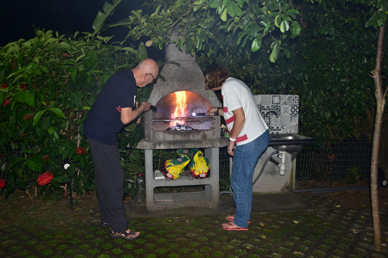 Notre soirée fut à la hauteur de nos espérances… nous avons dégusté nos chipolatas aux herbes (barbecue mené de mains de maître par Blandine !) après avoir mangé nos accras et bu notre ti punch…