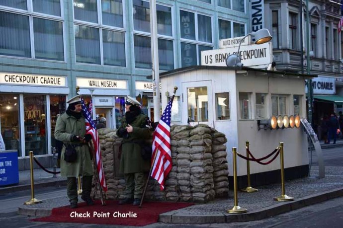 Samedi matin, il nous a fallu refaire les bagages (pas facile car Easy Jet n’autorise qu’un seul bagage cabine – même pas de sac à main – ce qui n’est pas très évident !) et libérer notre chambre à 11h. Nous nous sommes baladés autour de notre quartier et comme nous étions samedi, il y avait beaucoup de monde autour du Check Point Charlie : les gardes ne s’ennuyaient pas et posaient sans arrêt pour les photos souvenirs !