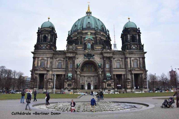 Vendredi, nous avons commencé nos visites par une très belle place, la Gendarmenmarkt. Deux églises presque identiques se font face – l’une édifiée pour les calvinistes français et l’autre pour les luthériens allemands – séparées par le Konzerthaus, théâtre néoclassique de Schinkel. Cette place est immense ce qui explique le fait que je n’ai pas réussi à la prendre en entier, n’ayant pas apporté le bon objectif pour cause de place !