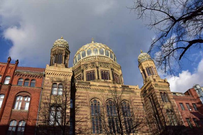 Après nous être reposés un moment dans un bar restaurant très chic situé dans la jolie cour du Hackesche Höfe, nous avons repris courage pour continuer jusqu’à la nouvelle synagogue que nous avions prévu de visiter… mais vous commencez à connaître notre veine et hélas, les visites ne reprendront qu’en juin prochain !!!!