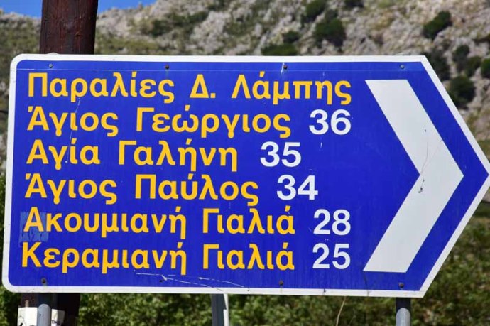 On peut doublement remercier Blandine qui, non contente de nous offrir ces vacances, met à notre disposition ses lointaines connaissances de grecque ancien pour déchiffrer les panneaux qui, dans la pampa, ne sont pas toujours traduits dans notre alphabet. Non seulement ils ne sont pas toujours traduits mais en plus, rien n’est indiqué et on a toutes les peines du monde à trouver les sites moins connus, telles les ruines d’Eleftherna.