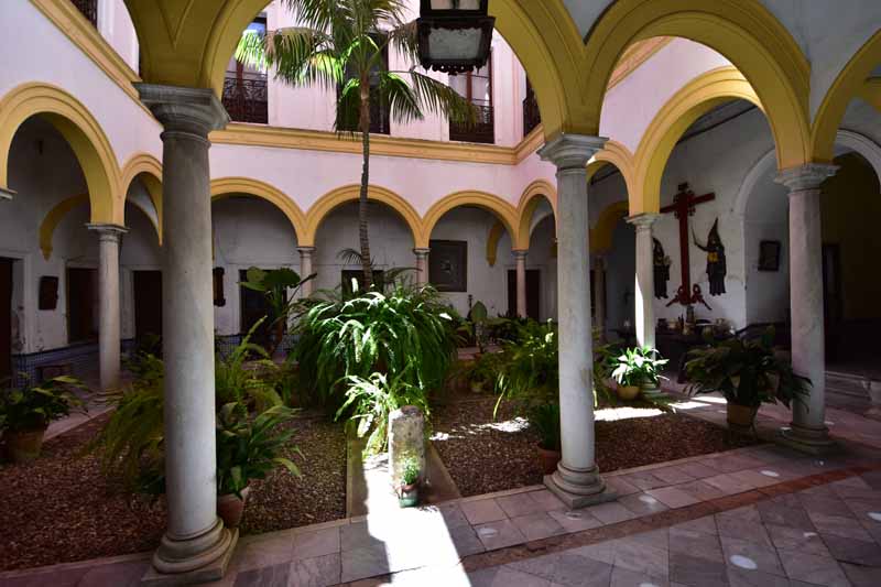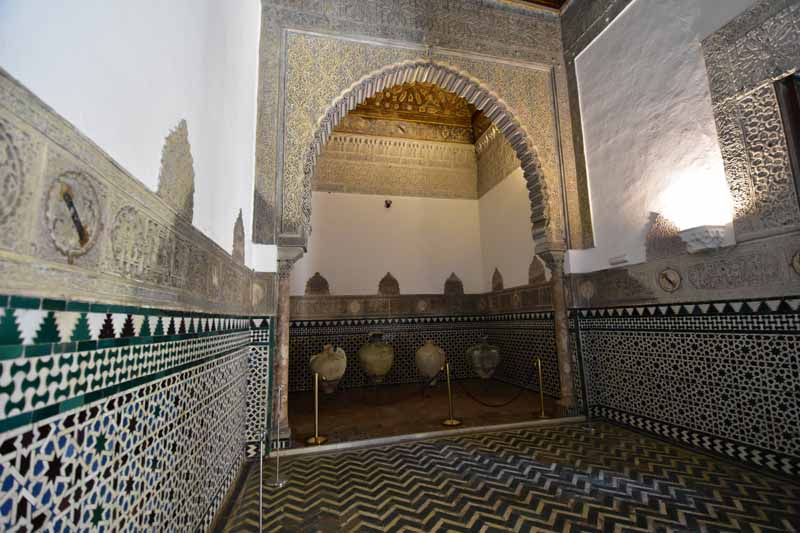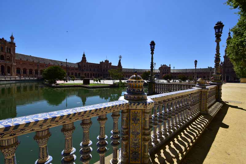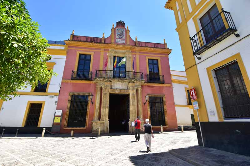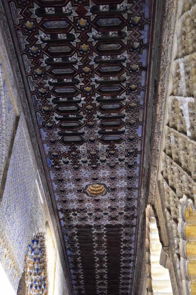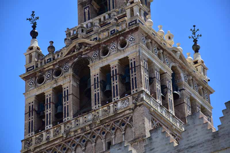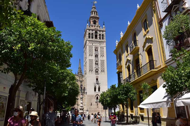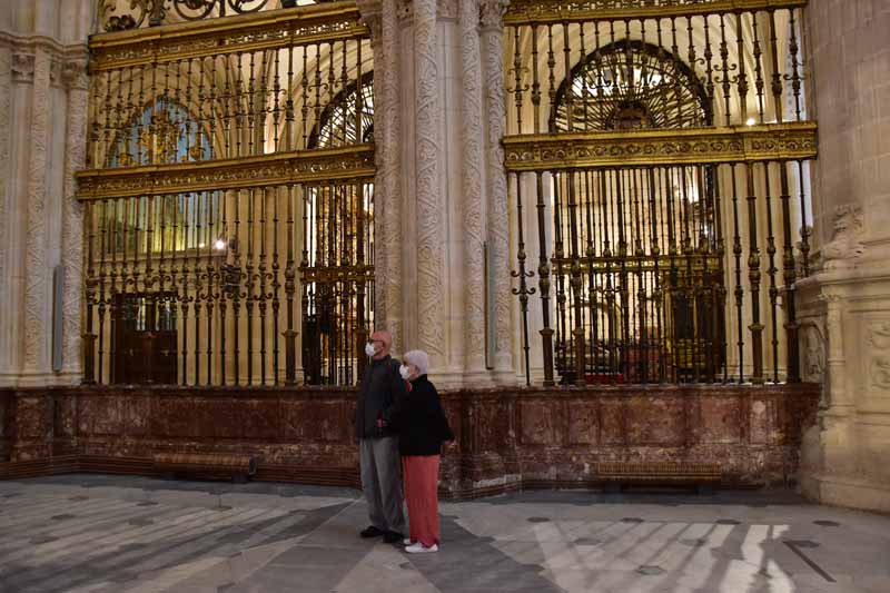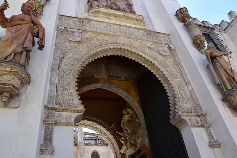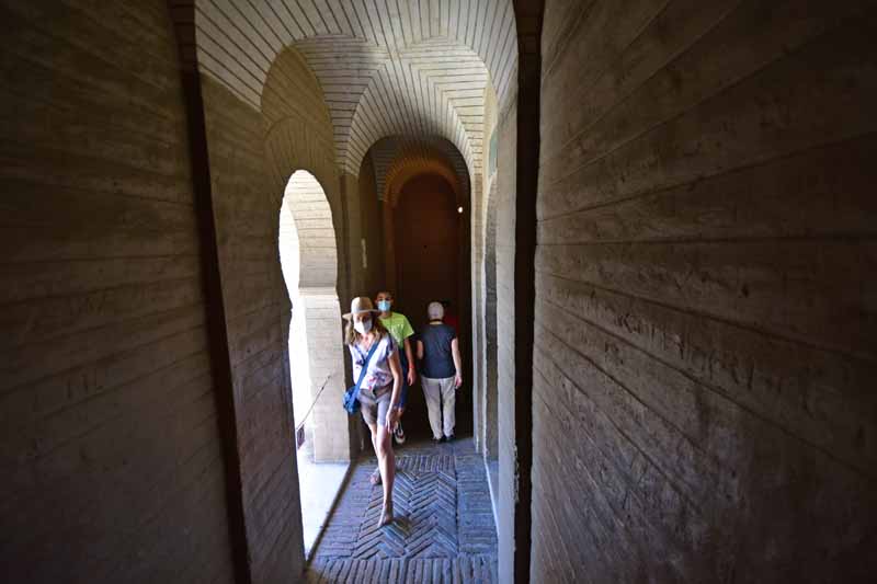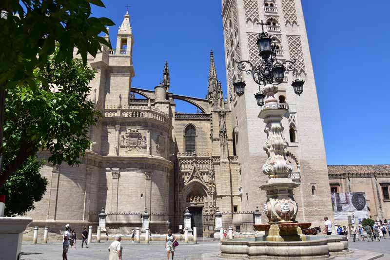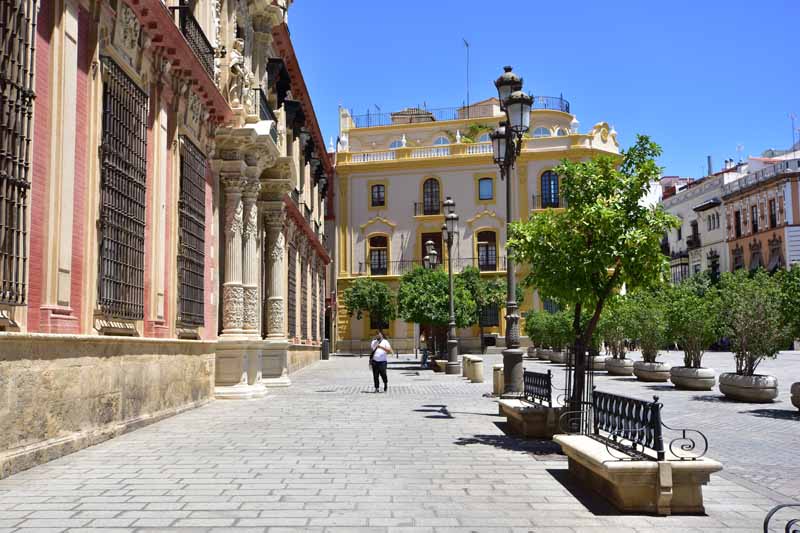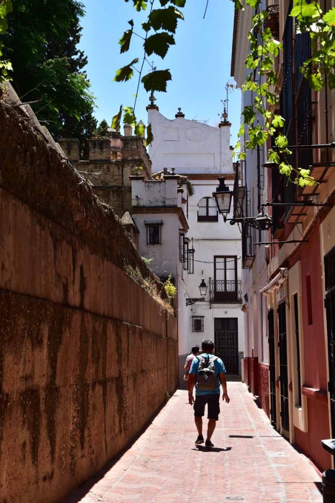 La résidence royale, avec ses patios, ses palais, ses salles Mudéjares et ses jardins est tout bonnement une pure merveille ! Traditionnellement, les Rois d’Espagne y descendent quand ils sont en visite à Séville (il faut savoir que dans ces cas là, on ne visite pas… ce qui apparemment est arrivé la semaine dernière puisque le Roi Felipe est venu à l’occasion du match de foot de l’Euro !!!). Pour une fois, on a eu de la chance. Par contre, nous n’avons pas pu visiter le palais royal lui-même car quand j’ai réservé les billets par internet, pour cause de covid, le palais n’était pas ouvert ! Il a rouvert cette semaine et donc, les groupes étaient déjà remplis…