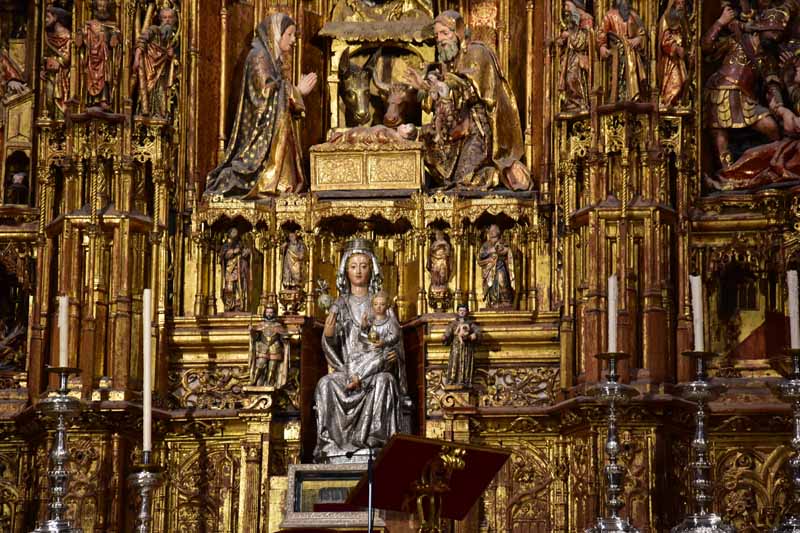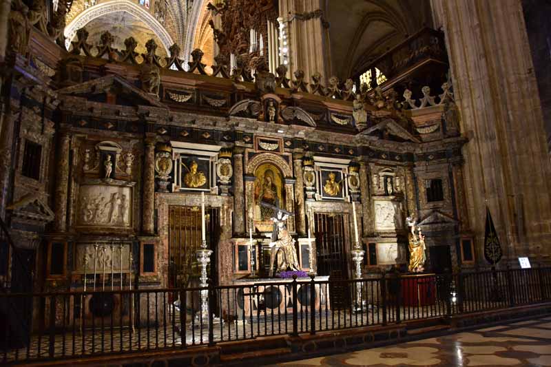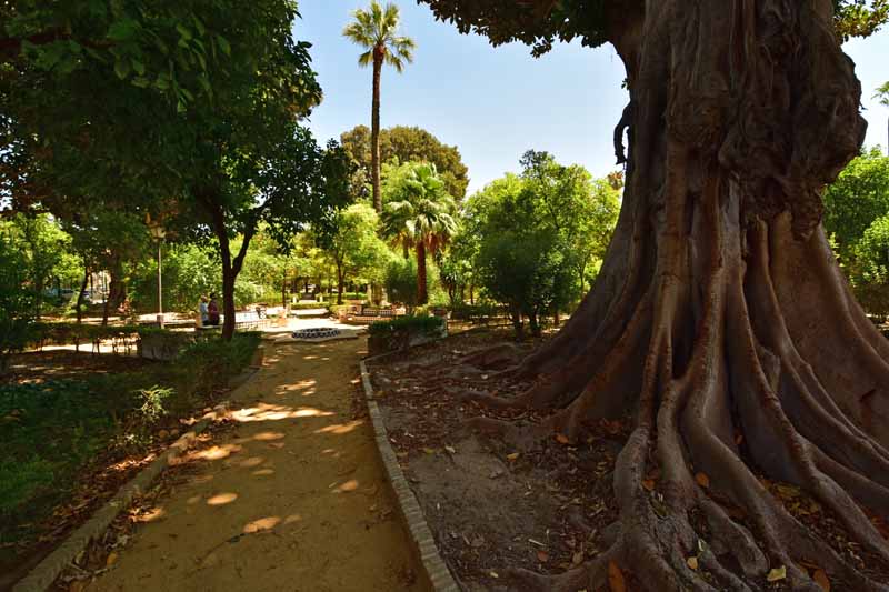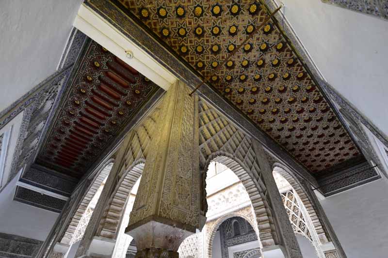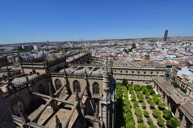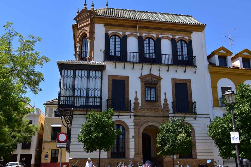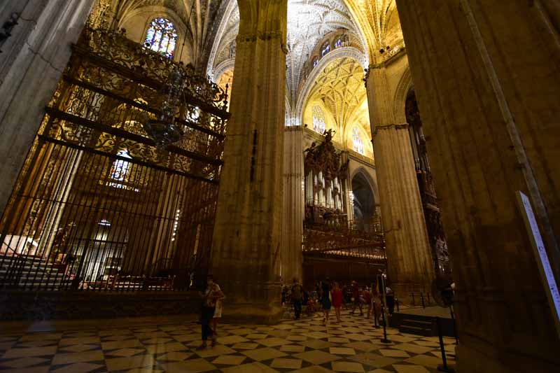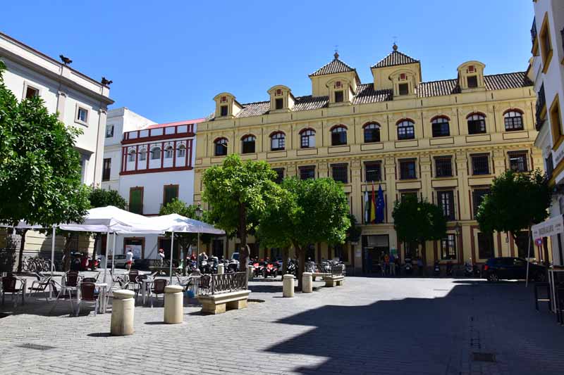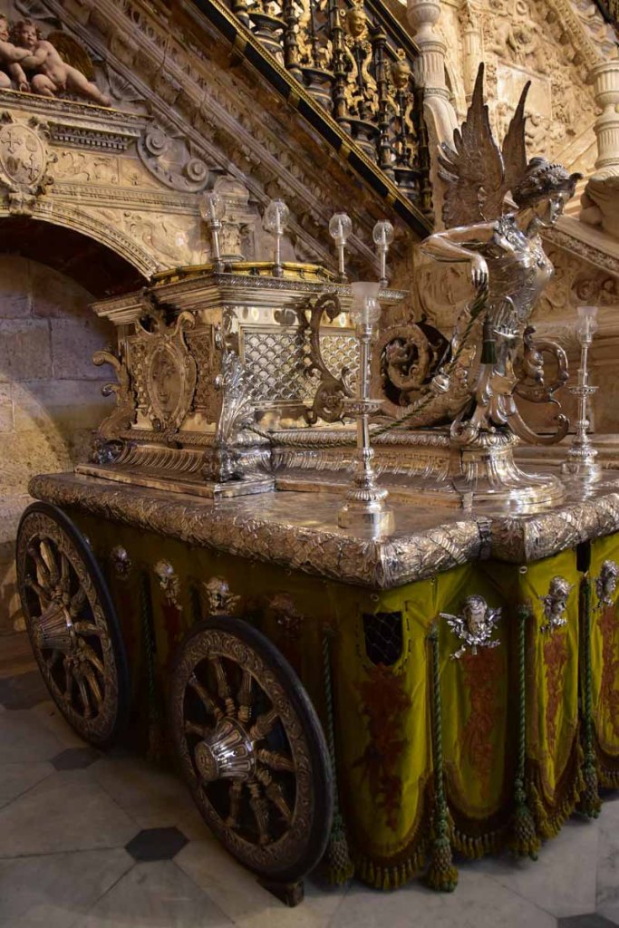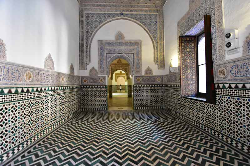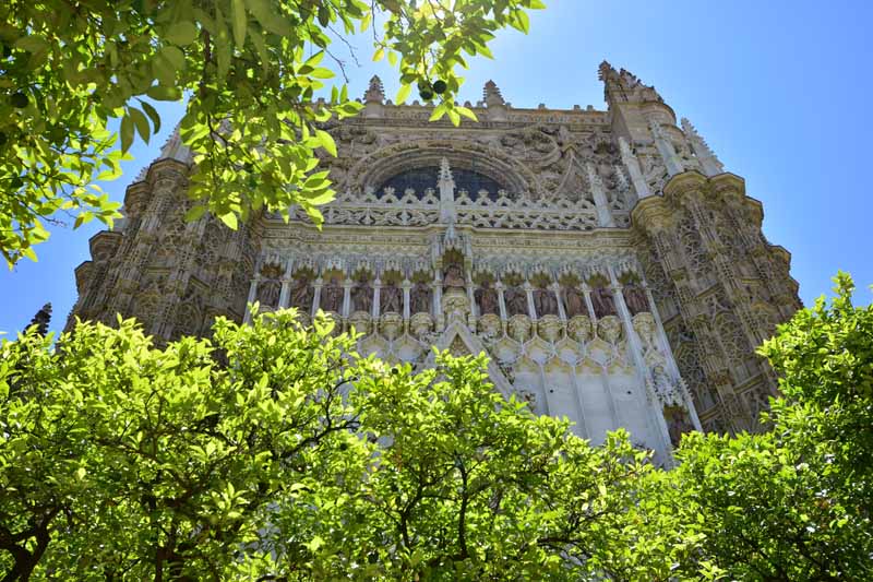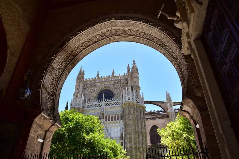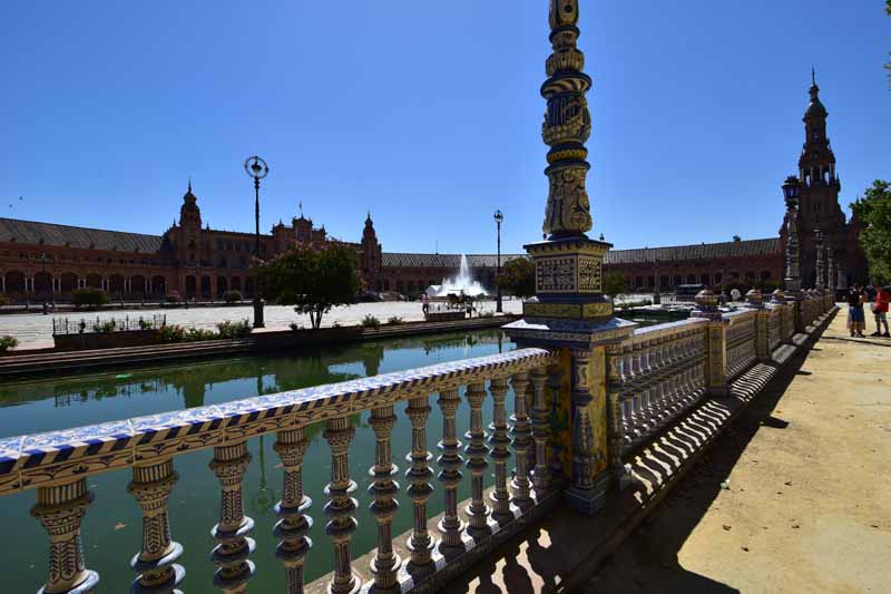La résidence royale, avec ses patios, ses palais, ses salles Mudéjares et ses jardins est tout bonnement une pure merveille ! Traditionnellement, les Rois d’Espagne y descendent quand ils sont en visite à Séville (il faut savoir que dans ces cas là, on ne visite pas… ce qui apparemment est arrivé la semaine dernière puisque le Roi Felipe est venu à l’occasion du match de foot de l’Euro !!!). Pour une fois, on a eu de la chance. Par contre, nous n’avons pas pu visiter le palais royal lui-même car quand j’ai réservé les billets par internet, pour cause de covid, le palais n’était pas ouvert ! Il a rouvert cette semaine et donc, les groupes étaient déjà remplis…