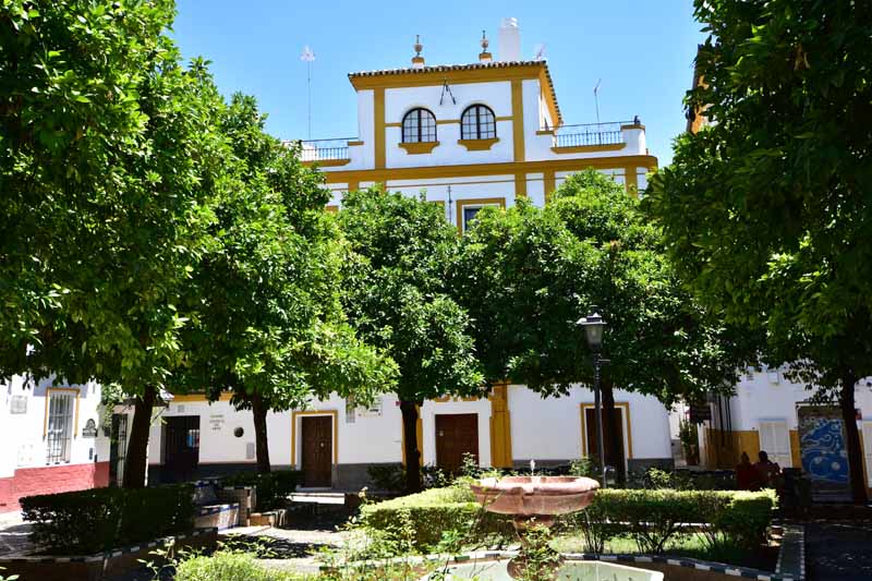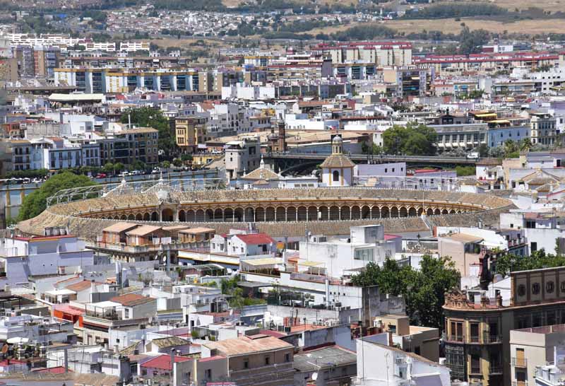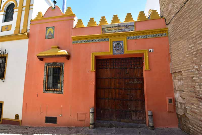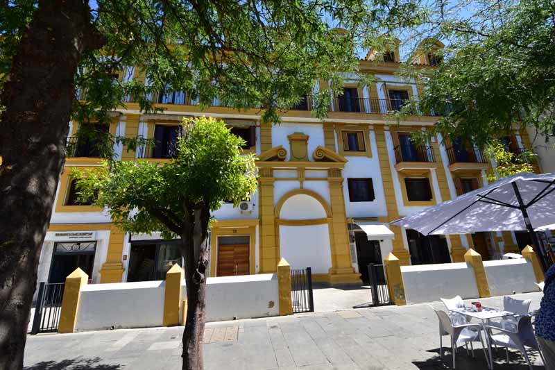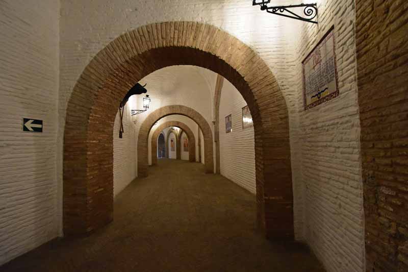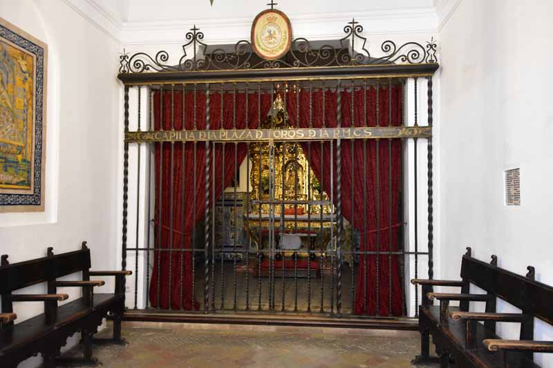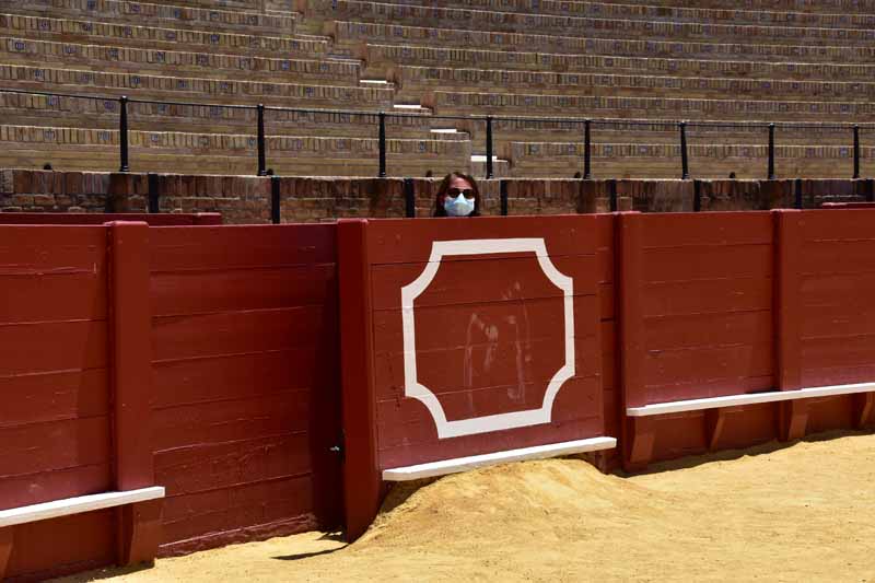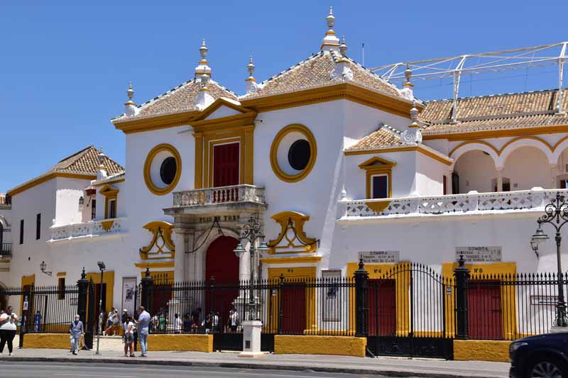 Finalement, nous sommes arrivés à la Plaza de Toros – la Maestranza – place mythique de la tauromachie, Séville étant l’une des capitales de la corrida. Encore notre jour de chance, la visite est gratuite le mercredi entre 14 et 16h et nous y étions un peu avant 16h. La construction commencée en 1761 s’est définitivement achevée 120 ans plus tard. Les plus grands noms de la tauromachie y ont toréé et cela durera tant que la tradition vivra… Les arènes peuvent accueillir jusqu’à 14000 spectateurs. Il y a même une chapelle où les toréadors peuvent prier avant d’entrer dans l’arène… C’est assez impressionnant de se retrouver dans cette immense arène, fort heureusement sans taureau !!!