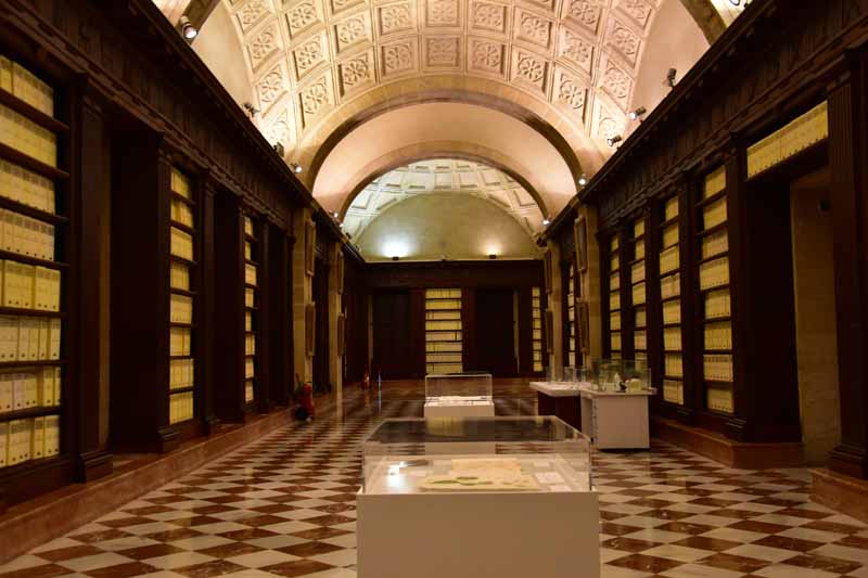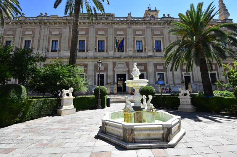 Tout près, se trouve les Archives Générales des Indes qui sont nées en 1785 de la volonté de Charles III d’Espagne de centraliser en un lieu unique les document relatifs aux colonies espagnoles. Elles abritent aujourd’hui plus de 90 millions de documents mis à la disposition des chercheurs. La visite est gratuite (!!!) et le bâtiment vaut la peine d’être vu, particulièrement un escalier monumental en marbre.