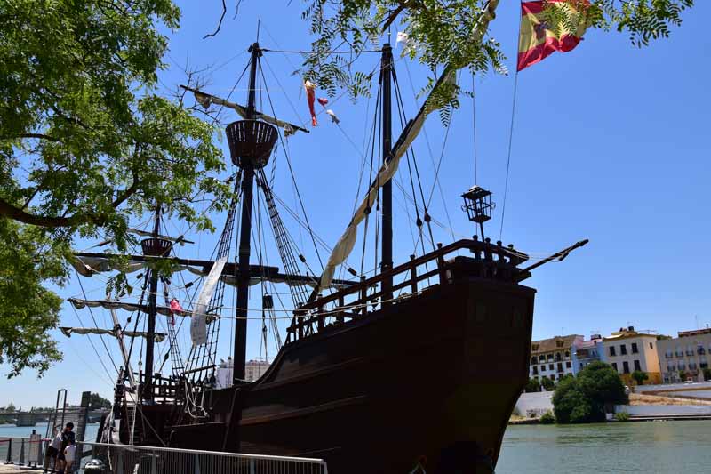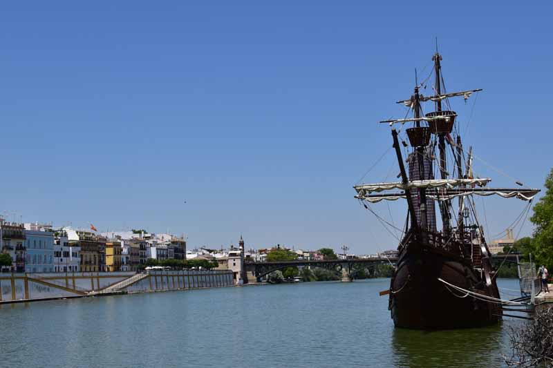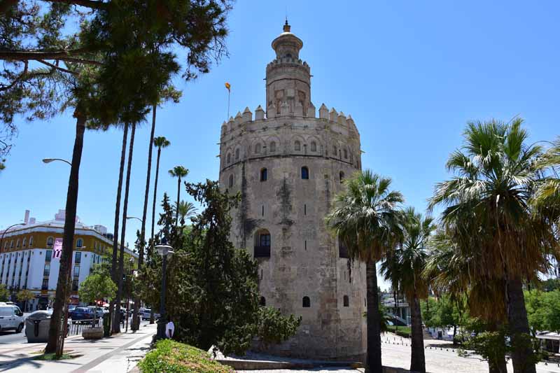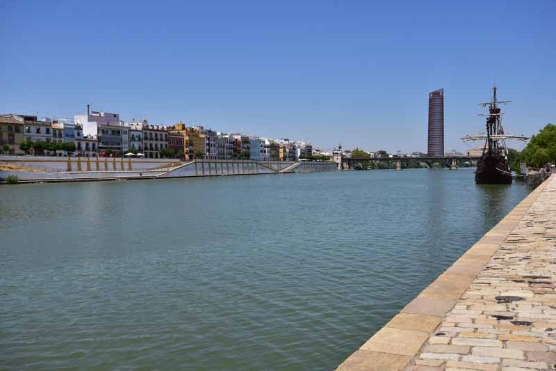 Comme il n’était pas encore très tard et que la chaleur était encore supportable, nous avons décidé d’aller faire un tour le long du Guadalquivir. Nous y avons vu « La Torre del Oro » qui a vu le jour au 13ème siècle afin de contrôler l’accès à la ville depuis le Guadalquivir. Si l’origine de son nom prête à de nombreuses versions, on sait en revanche qu’on y entreposait temporairement l’or que ramenaient les galions d’Amérique du Sud.