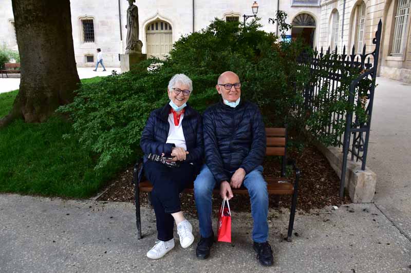 Pour le retour, nous avions prévu une étape à Dijon en espérant que le temps soit de la partie et nous n’avons pas été déçus. Une seule (grosse) averse est venue tempérer notre ardeur durant notre découverte de la capitale de la moutarde… Heureusement, c’était à la fin de la balade et nous avons pu nous abriter sous un arbre touffu qui nous a servi de parapluie.