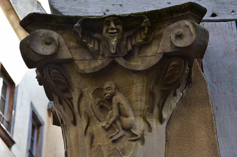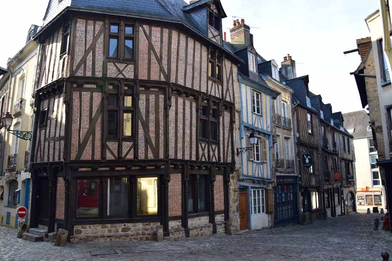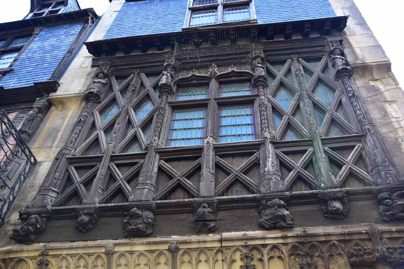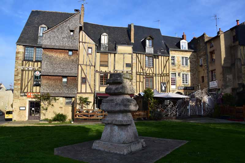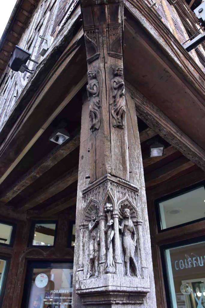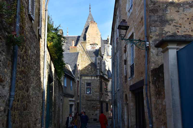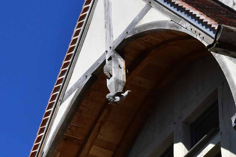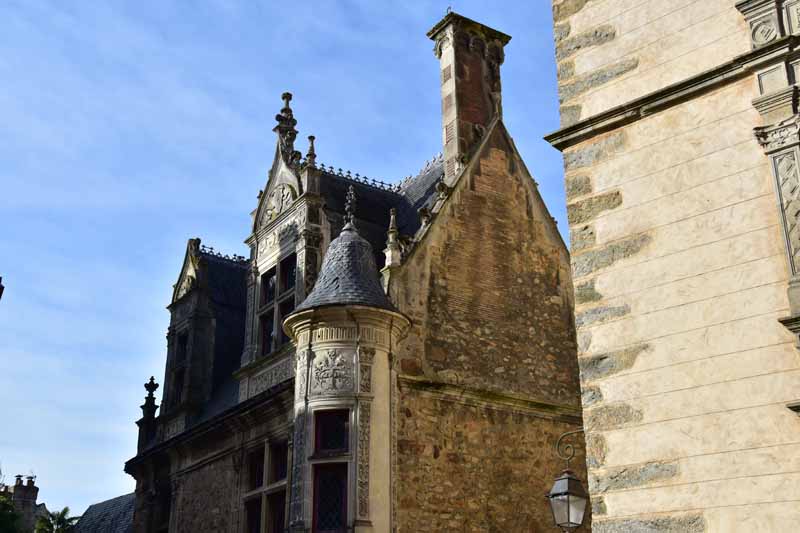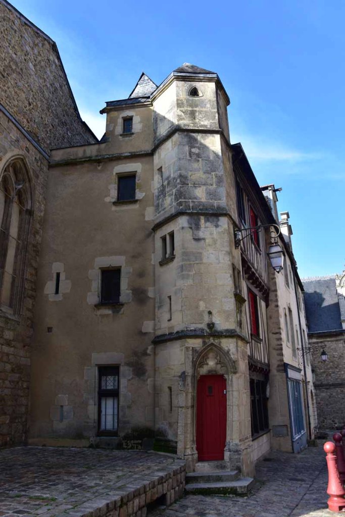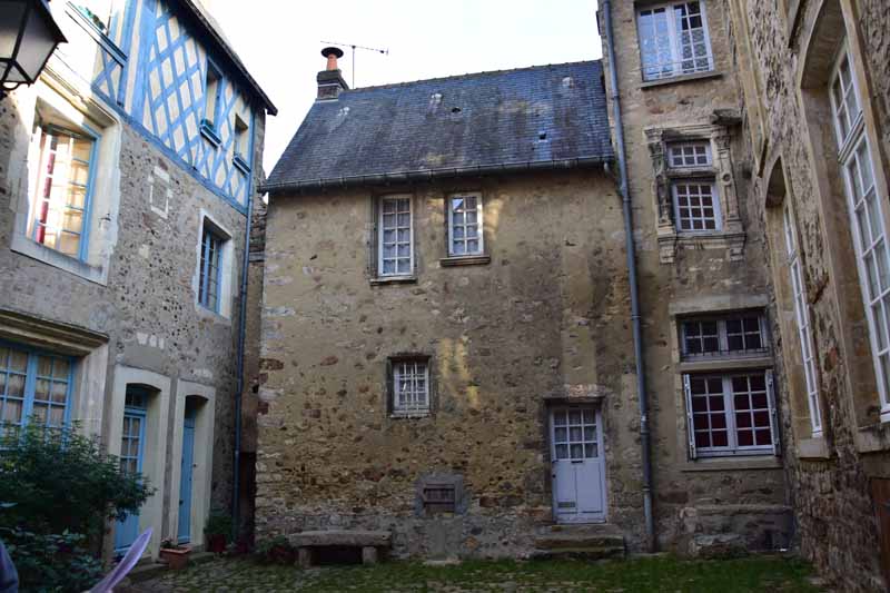 Nous avons été charmés et, incultes que nous sommes, très étonnés de découvrir une cité médiévale au Mans car pour nous, comme pour beaucoup de gens je pense, Le Mans se résumait à la célèbre course des 24 heures ! Erreur grossière. Nous avons parcouru avec délice toutes ces ruelles pavées (d’accord, c’est un peu fatiguant…) bordées de chasse-roues qui avaient pour mission de préserver des roues des charriots les murs des maisons. Plus d’une centaine de maisons en pan-de-bois, datant en majorité des 15ème et 16ème siècles, offrent leurs belles façades à nos regards curieux. Certaines sont ornées d’un pilier d’angle (ou pilier cornier) : pilier rouge, pilier vert, pilier aux clés etc… qui représentaient à l’époque des enseignes commerciales mais étaient aussi un moyen de se repérer en l’absence de tout nom donné aux rues ou de numérotation des maisons.