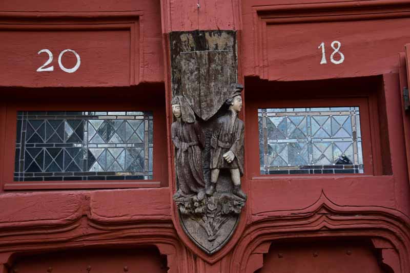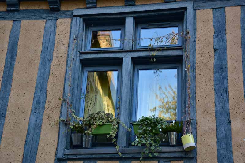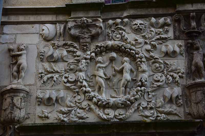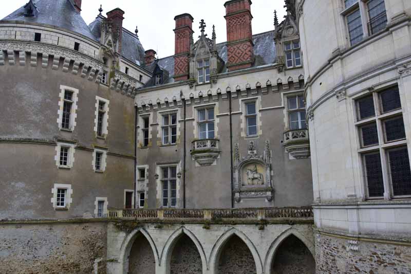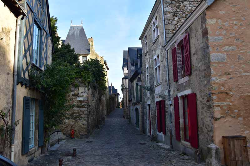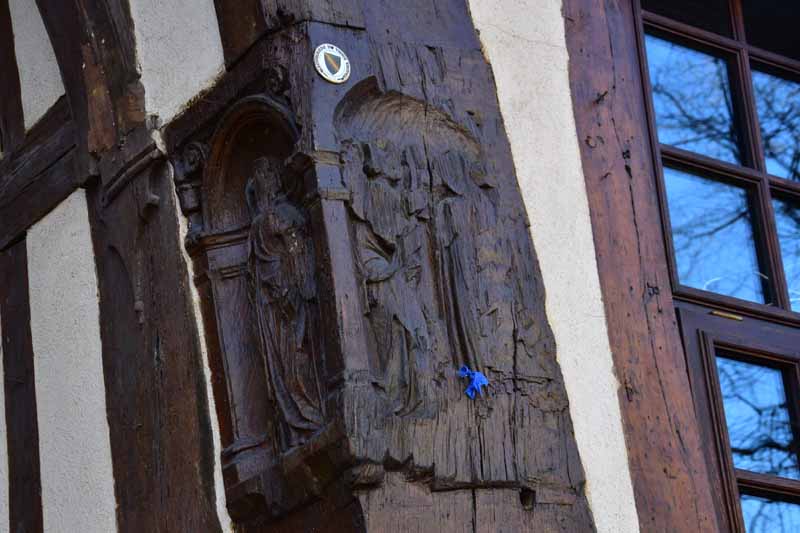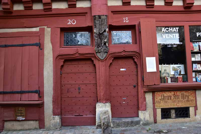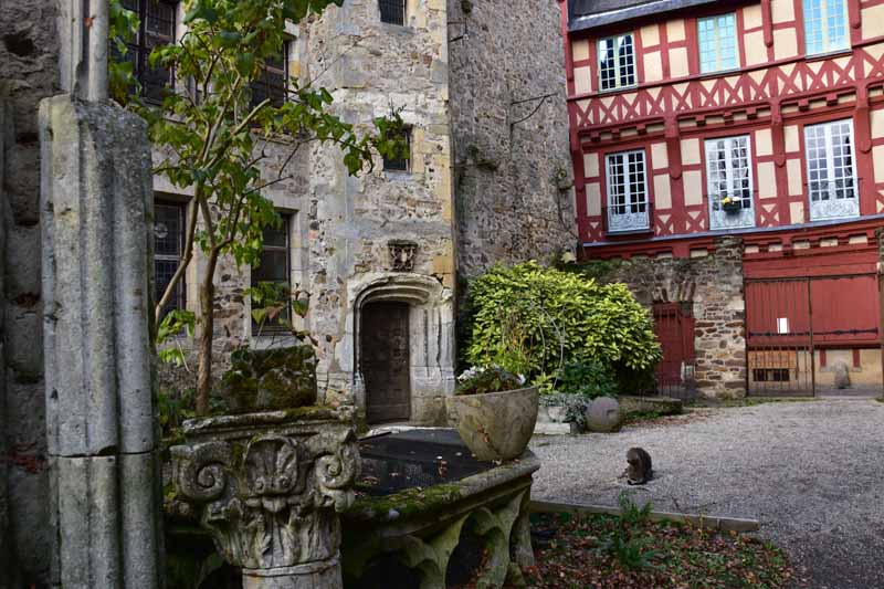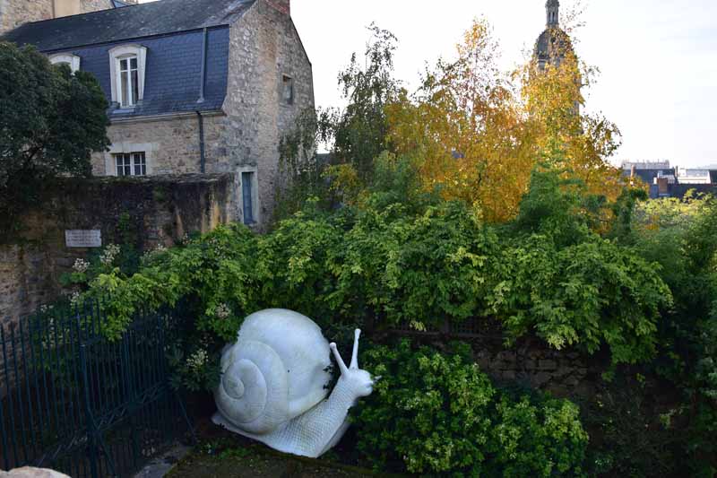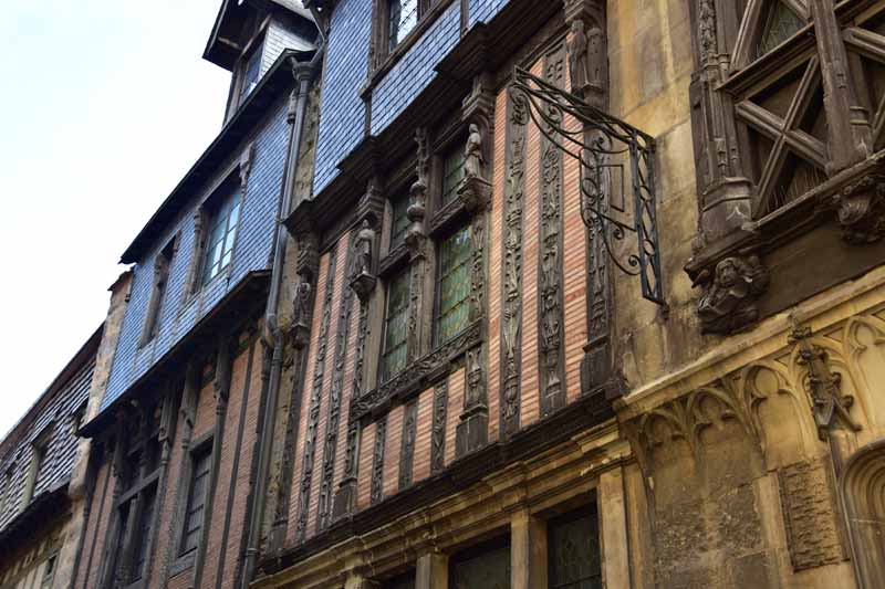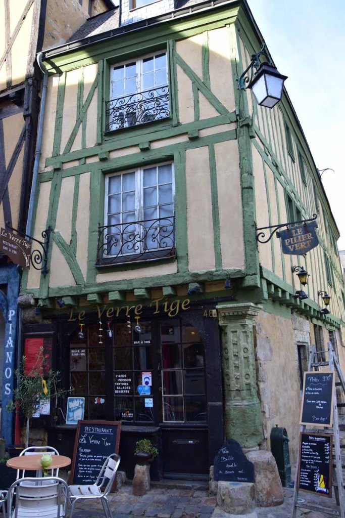 Nous avons été charmés et, incultes que nous sommes, très étonnés de découvrir une cité médiévale au Mans car pour nous, comme pour beaucoup de gens je pense, Le Mans se résumait à la célèbre course des 24 heures ! Erreur grossière. Nous avons parcouru avec délice toutes ces ruelles pavées (d’accord, c’est un peu fatiguant…) bordées de chasse-roues qui avaient pour mission de préserver des roues des charriots les murs des maisons. Plus d’une centaine de maisons en pan-de-bois, datant en majorité des 15ème et 16ème siècles, offrent leurs belles façades à nos regards curieux. Certaines sont ornées d’un pilier d’angle (ou pilier cornier) : pilier rouge, pilier vert, pilier aux clés etc… qui représentaient à l’époque des enseignes commerciales mais étaient aussi un moyen de se repérer en l’absence de tout nom donné aux rues ou de numérotation des maisons.