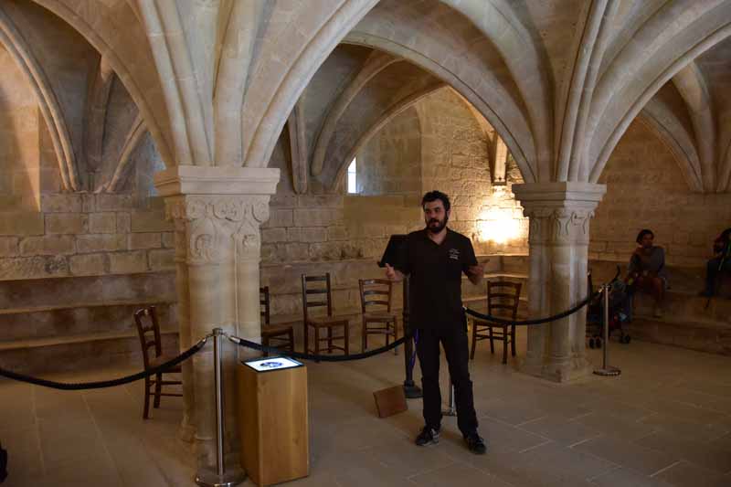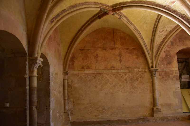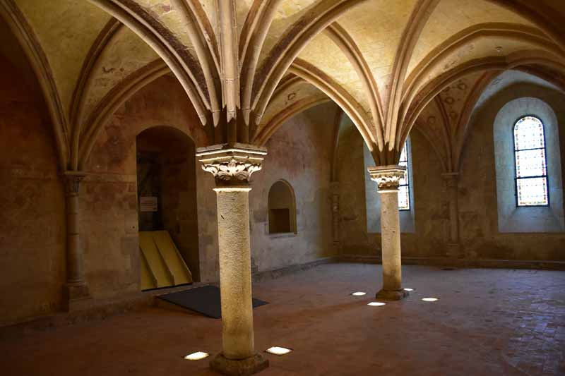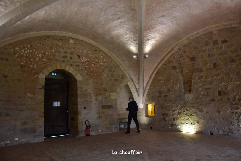 Nous y avons découvert quelques jolies salles dont le chauffoir où les moines venaient se réchauffer, lire ou méditer. Il s’agissait de la seule pièce du monastère avec une cheminée ! Le scriptorium était utilisé par les moines pour recopier et enluminer les manuscrits et, à notre grand étonnement, cette pièce n’était pas chauffée ! C’est pourquoi nous avons découvert un petit guichet (que nous pensions être un passe-plat !) communiquant avec le chauffoir afin de réchauffer l’encre pour ne pas qu’elle gèle !!! brrrr…