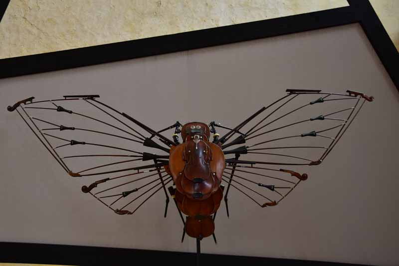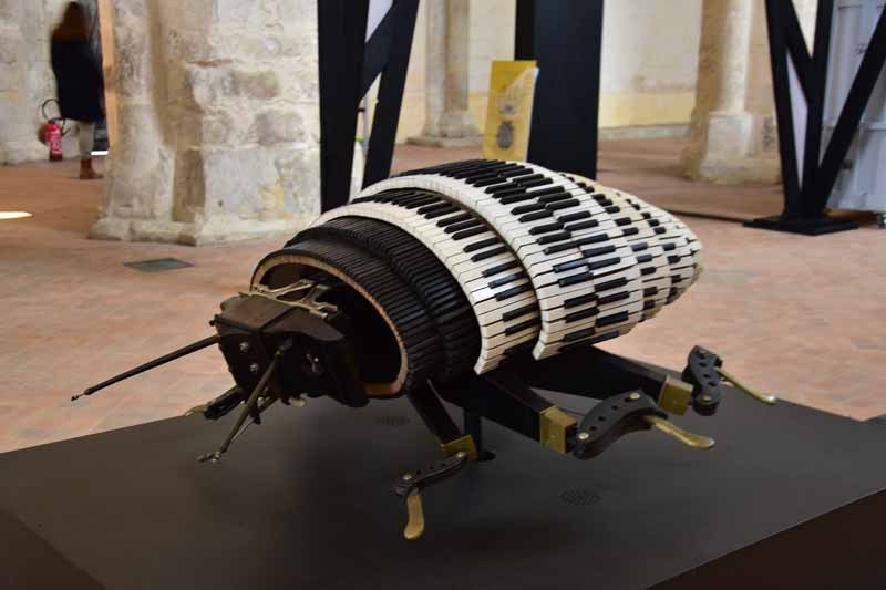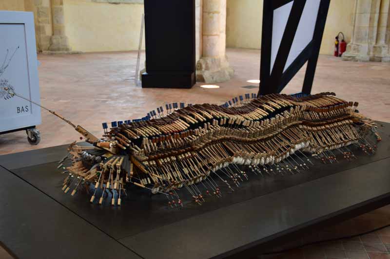 Une exposition était en cours d’installation dans l’abbatiale. L’exposition « Anima(ex)Musica-Bestiaire utopique » créée par le Collectif « Tout reste à faire » repose sur l’idée de créer des arthropodes (animaux dotés de pattes articulées) à partir de pièces d’instruments de musique usagées. C’était vraiment très chouette mais dommage, l’expo n’ouvrira ses portes que le 20 novembre. D’après ce que nous avons compris, les insectes seront animés et sonores !