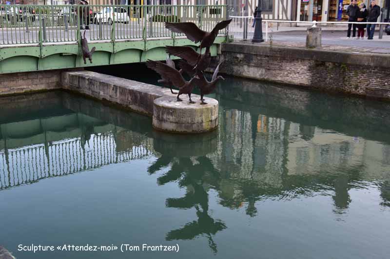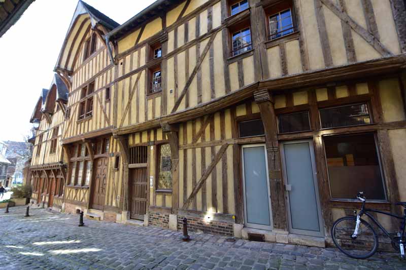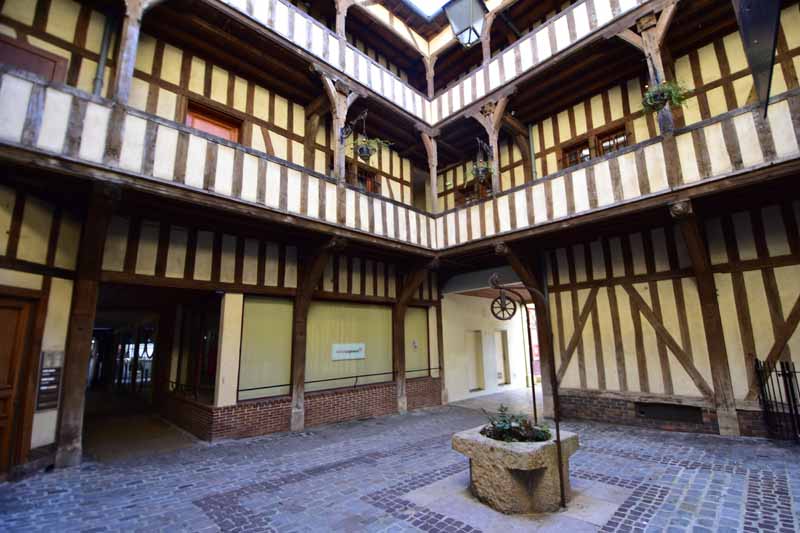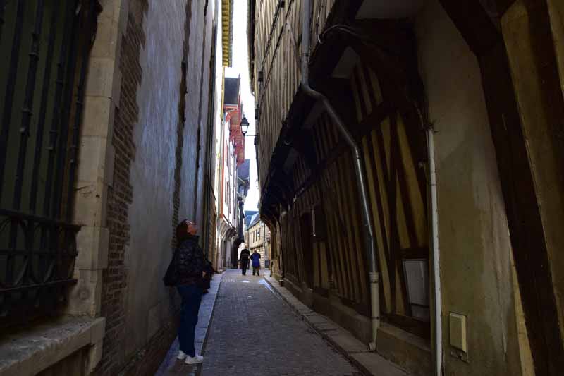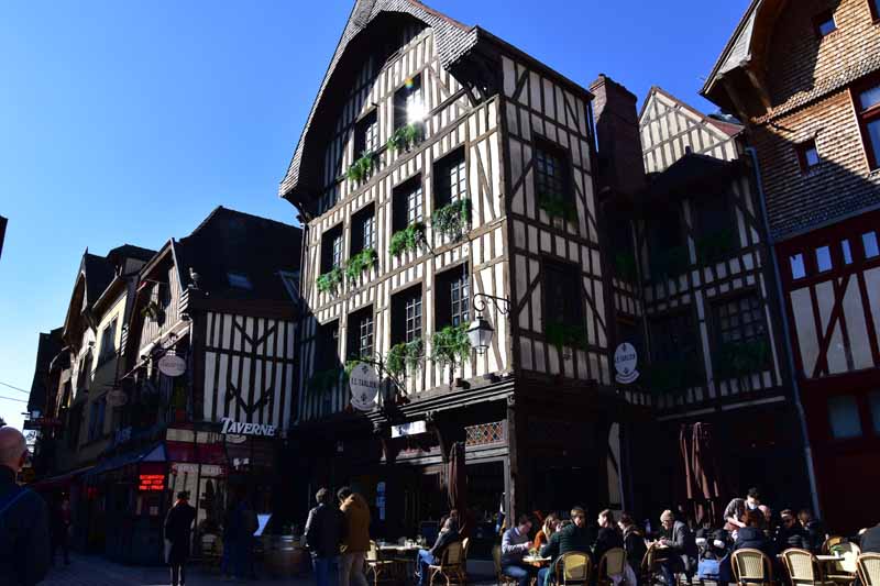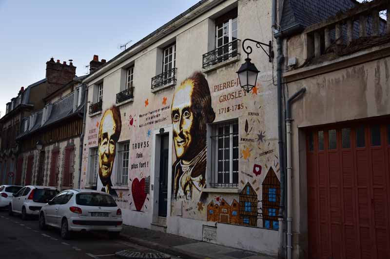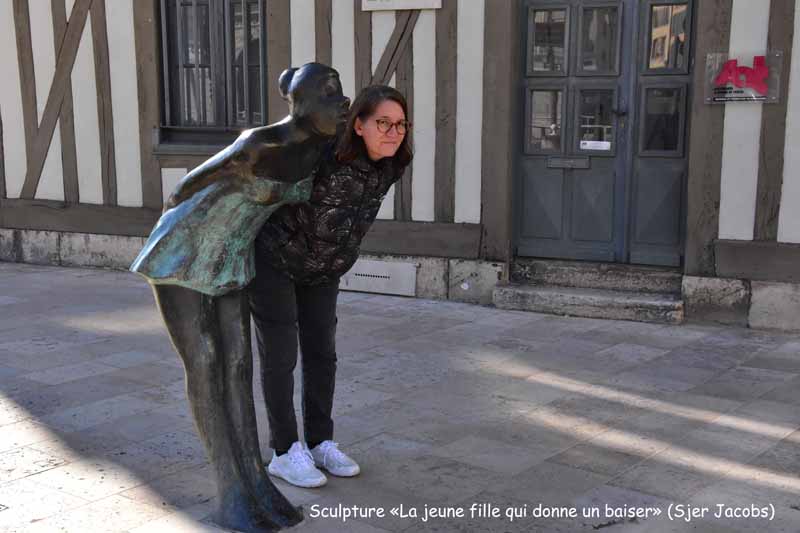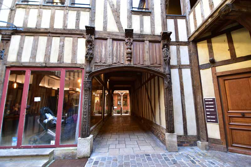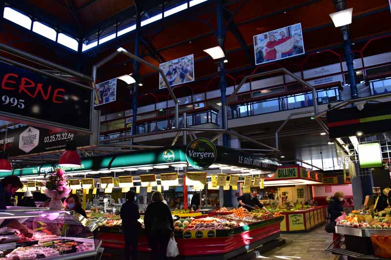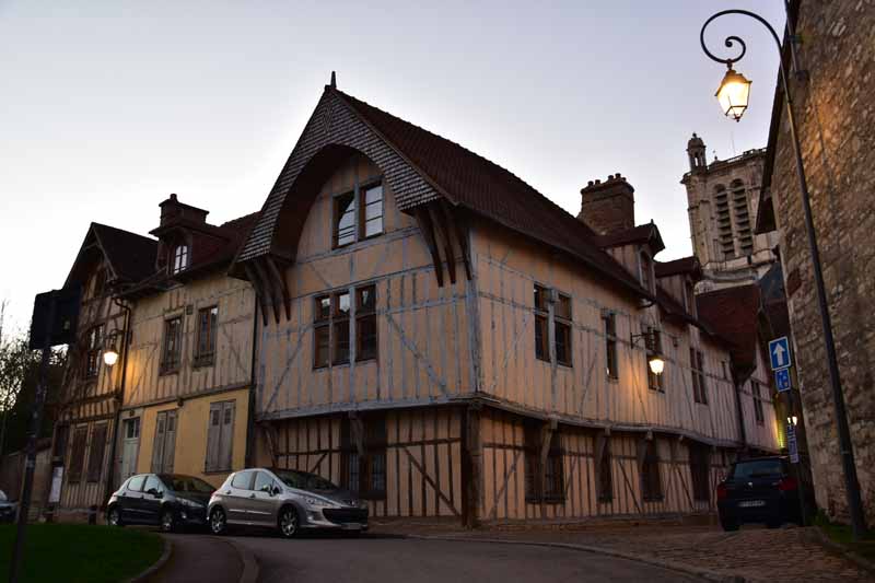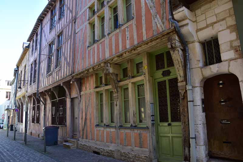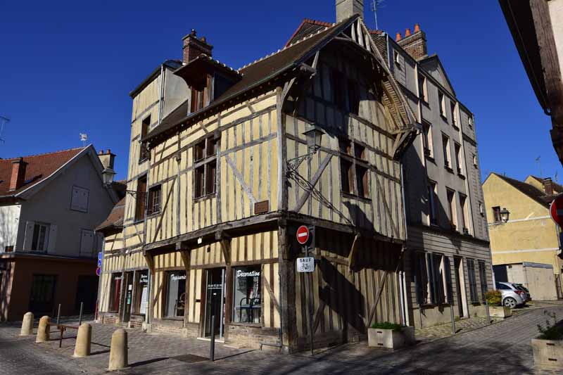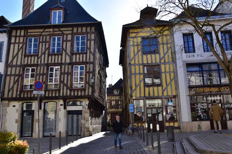 Troyes est la capitale historique de la Champagne et, bizarrement, à y regarder de plus près, on observe que le tracé du contour de la vieille ville a la forme d’un bouchon de champagne… ça ne s’invente pas ! C’est au cœur du 16ème siècle que nous sommes transportés : les ruelles pavées cheminent au milieu d’un vaste centre piéton, très homogène, entre les maisons à pans de bois (le plus grand ensemble qui subsiste de nos jours en France) superbement rénovées et les monuments religieux (cathédrale, basilique et églises) avec leurs magnifiques vitraux qui font que de nombreux spécialistes ont baptisé Troyes « Ville Sainte du Vitrail ». Un musée du vitrail existe d’ailleurs, que nous voulions aller visiter, mais hélas il était fermé… La ville s’est développée grâce au dynamisme commercial datant des foires médiévales (les fameuses foires de Champagne), au rayonnement artistique et culturel de l’école champenoise de sculpture du 16ème siècle et, enfin, au savoir-faire industriel. Troyes s’est érigée en capitale de la bonneterie dès le 19ème siècle, je me souviens maman travaillant, entre autre, pour Valton (qui n’est autre que la marque Petit-Bateau). Tout le monde avait du travail à l’époque, ce qui n’a pas été la même chose quand nous sommes arrivés en Bretagne !