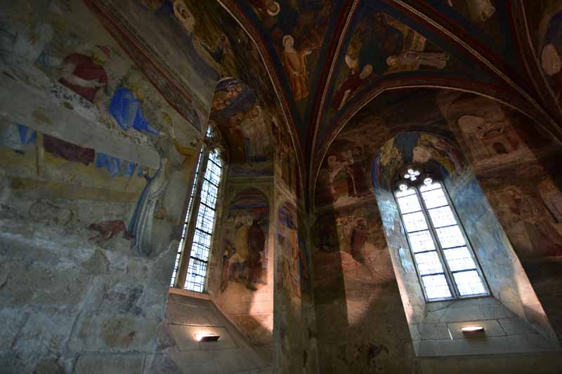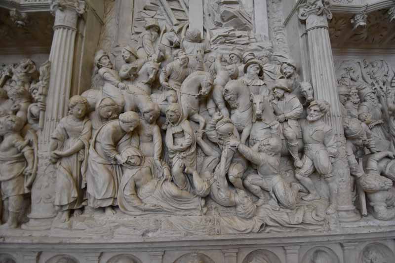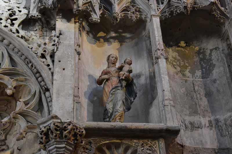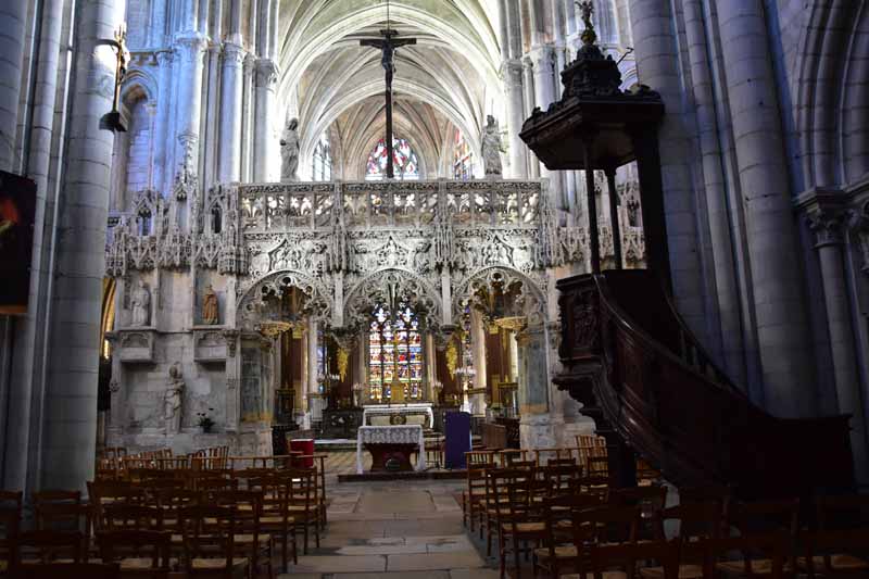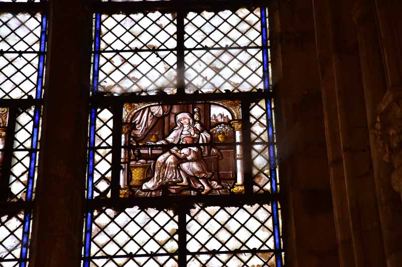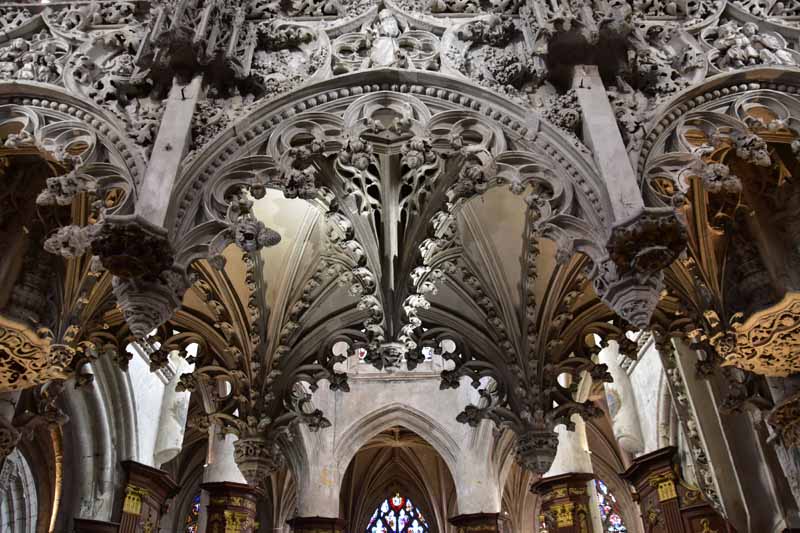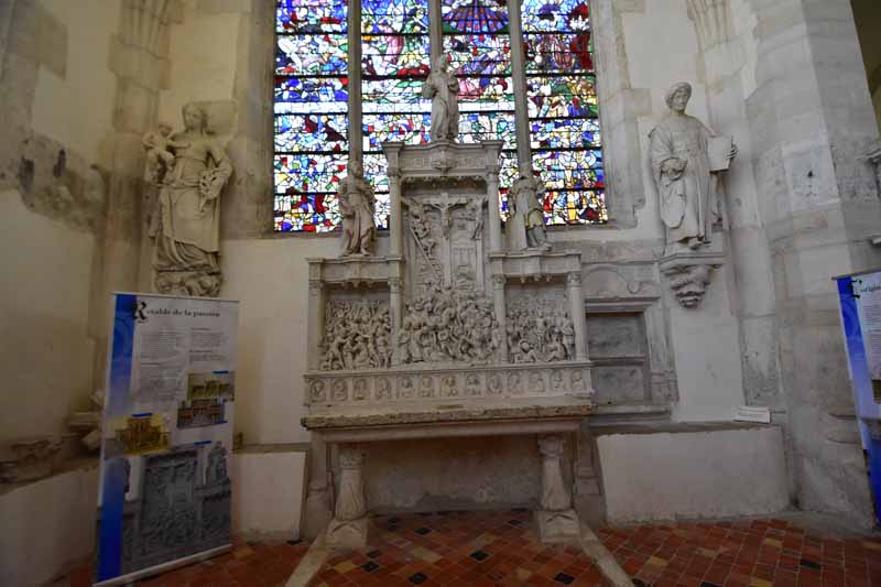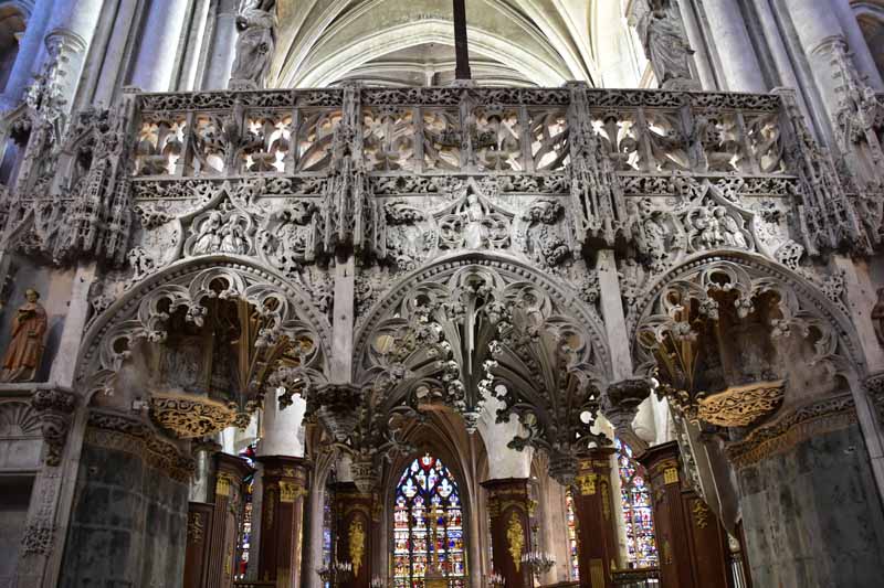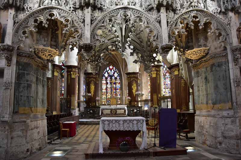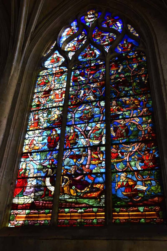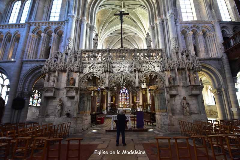 Nous avons bien sûr consacré pas mal de temps aussi à la visite des églises. Tout d’abord, l’église de la Madeleine dont la construction commença au 12ème siècle est surtout connue pour son célèbre jubé, une dentelle de pierre comme suspendue entre le cœur et la nef. Les magnifiques vitraux du chœur, qui datent du 15/16ème siècle, ont aussi attiré notre attention.