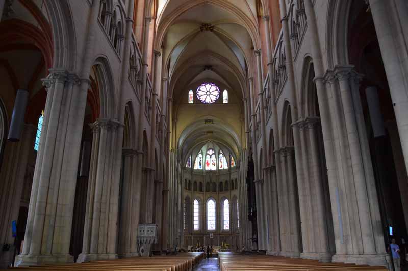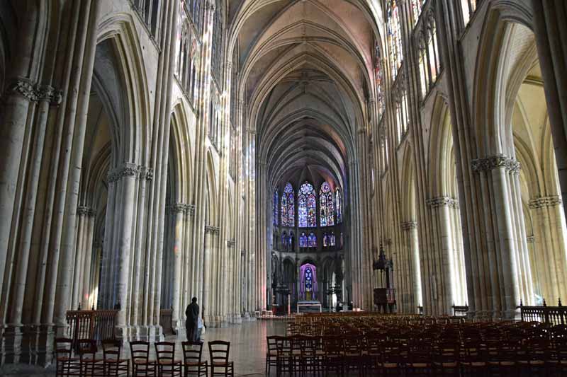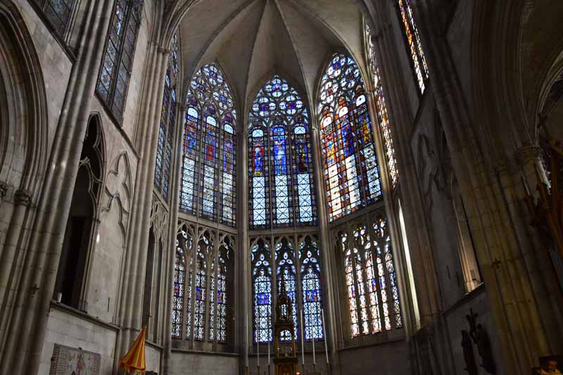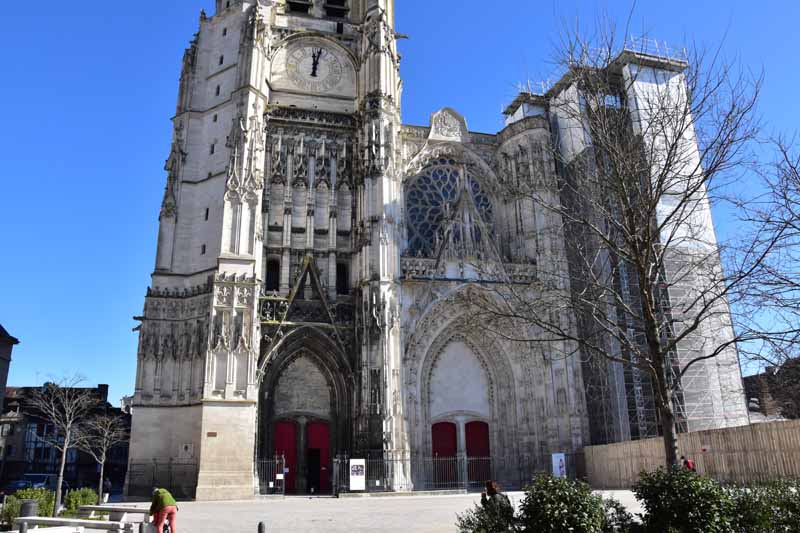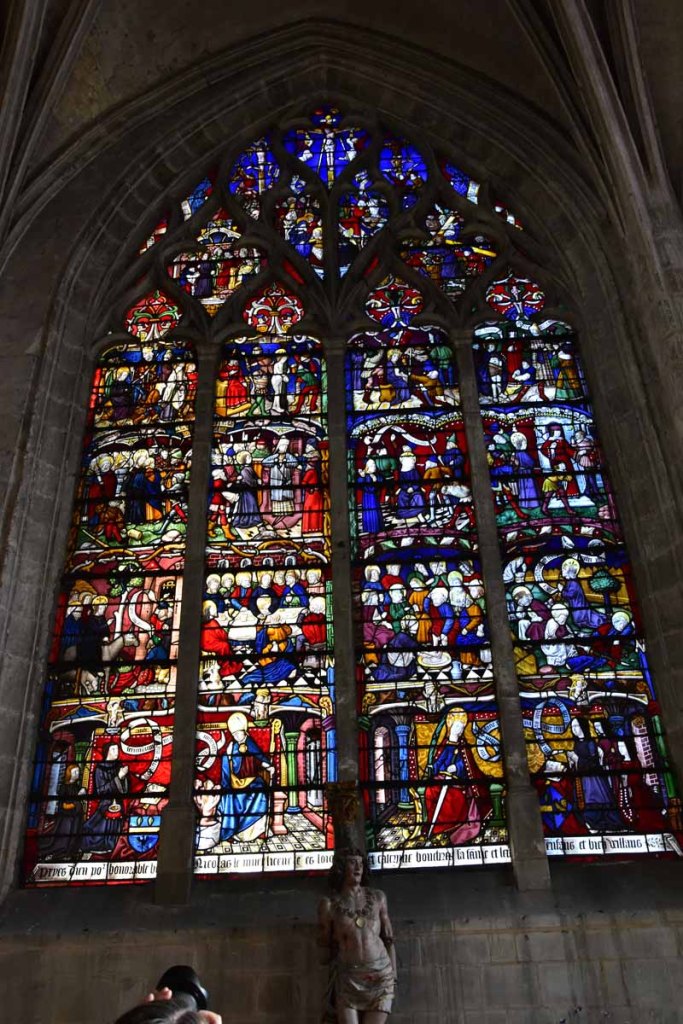 Et pour finir, la Cathédrale St-Pierre-St-Paul, imposant édifice qui fut construit entre le début du 13ème siècle et le début du 17ème. Elle n’a qu’une tour, l’autre n’ayant jamais été élevée… L’intérieur, aux lumineuses pierres blanches, présente une remarquable unité malgré les siècles qu’a nécessités sa construction, mais c’est surtout à ses vitraux que le monument doit toute son originalité : 1500m² de verrières qui résument à elles seules l’histoire du vitrail du 13ème au 19ème siècle… magnifique !