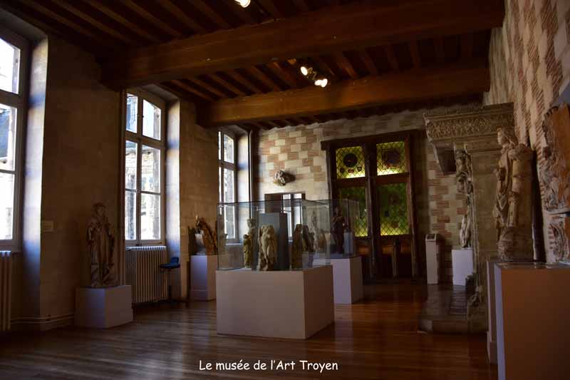 Nous avons pu visiter le musée de Vauluisant (au moins, celui-là était ouvert !). L’élégant hôtel de Vauluisant, dont la façade Renaissance ne manque pas d’allure, abrite 2 musées : le 1er retrace l’âge d’or de l’art champenois à son apogée au 16ème siècle (peintures, sculptures, vitraux) vraiment très intéressant et le second évoque l’histoire de la bonneterie de 1750 à nos jours (avec évocation des marques emblématiques de la région, noms qui ont bien résonnés dans ma tête !)…