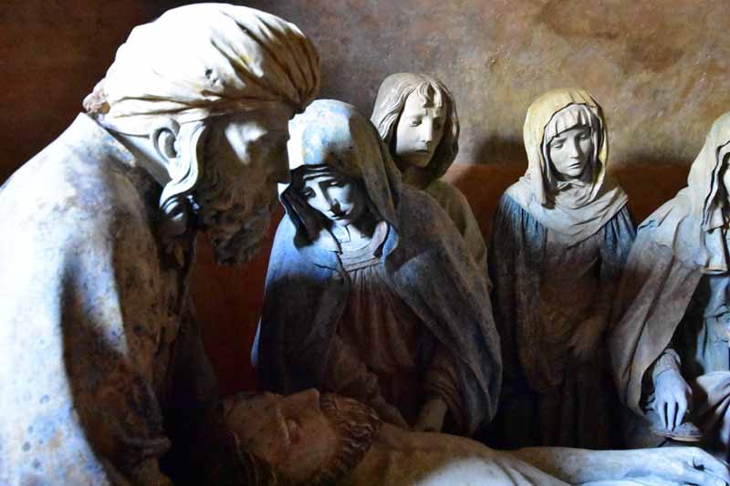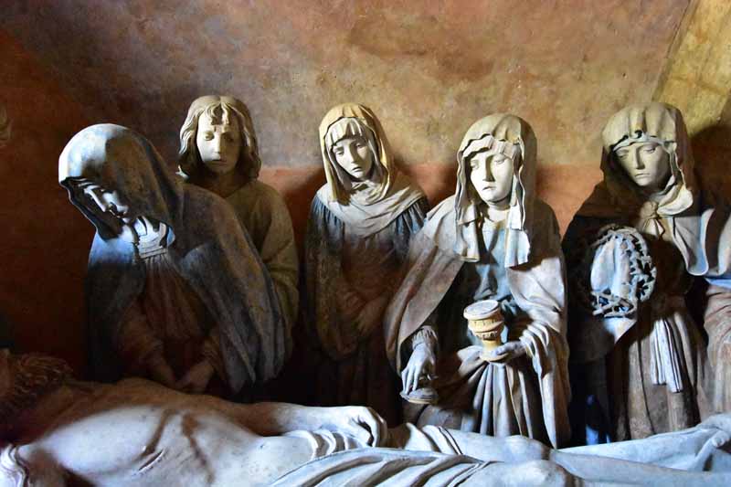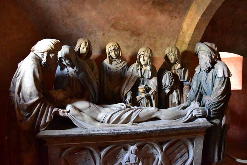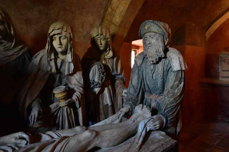 Nous aimons beaucoup la campagne environnante et nous avons poussé jusqu’à Chaource, petit village typique, célèbre pour son fromage déjà prisé à l’époque de Philippe le Bel, et à découvrir impérativement pour son église qui recèle un véritable trésor dans une crypte : une mise au tombeau extraordinaire réalisée en 1515 par un artiste connu sous le nom de Maître de Chaource. On peut aussi y voir une magnifique crèche en bois doré datée de 1540, composée de 22 statuettes en bois sculpté, peint et doré à l’or fin…