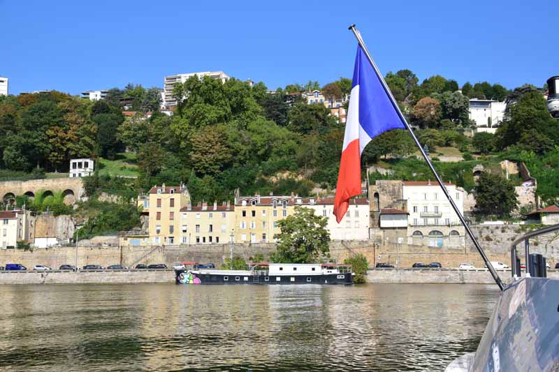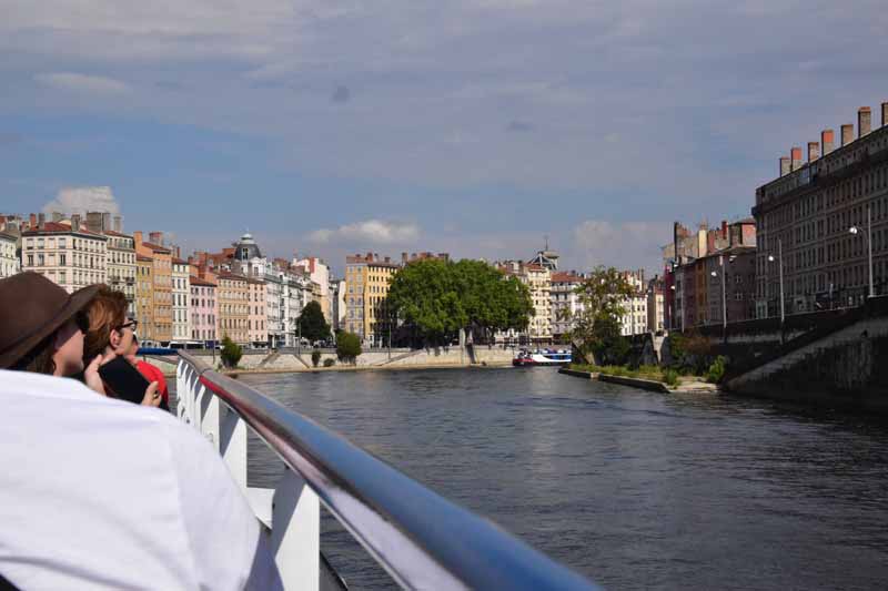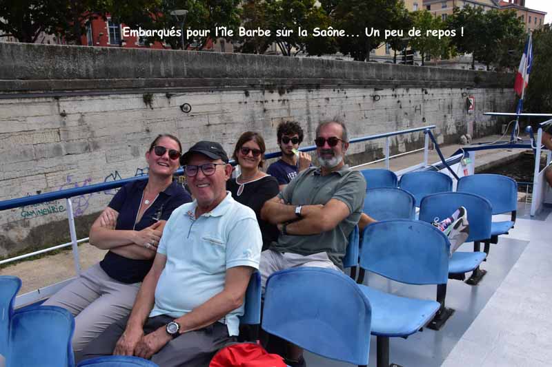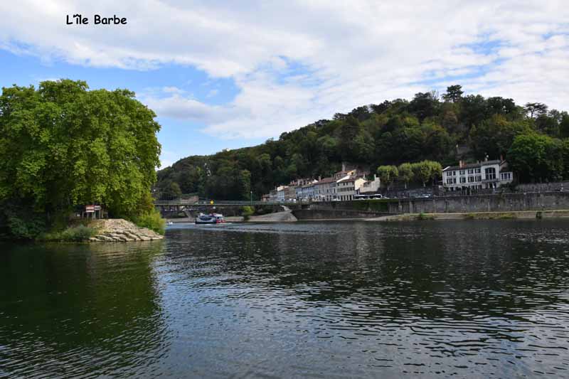 Comme il n’était pas encore très tard et que nous étions un peu entamés physiquement, nous avons décidé de nous offrir une petite croisière sur la Saône. Le prochain départ étant « cap sur l’île Barbe », hop nous voilà partis !!! Assis sur le pont du bateau, nous avons apprécié cette jolie balade qui nous a conduit jusqu’à cette petite île dont nous avons fait le tour en admirant son église romane.