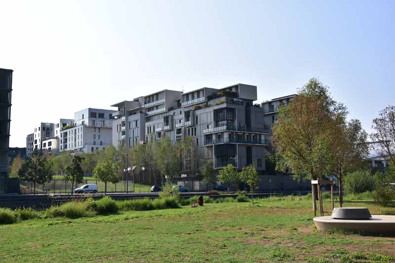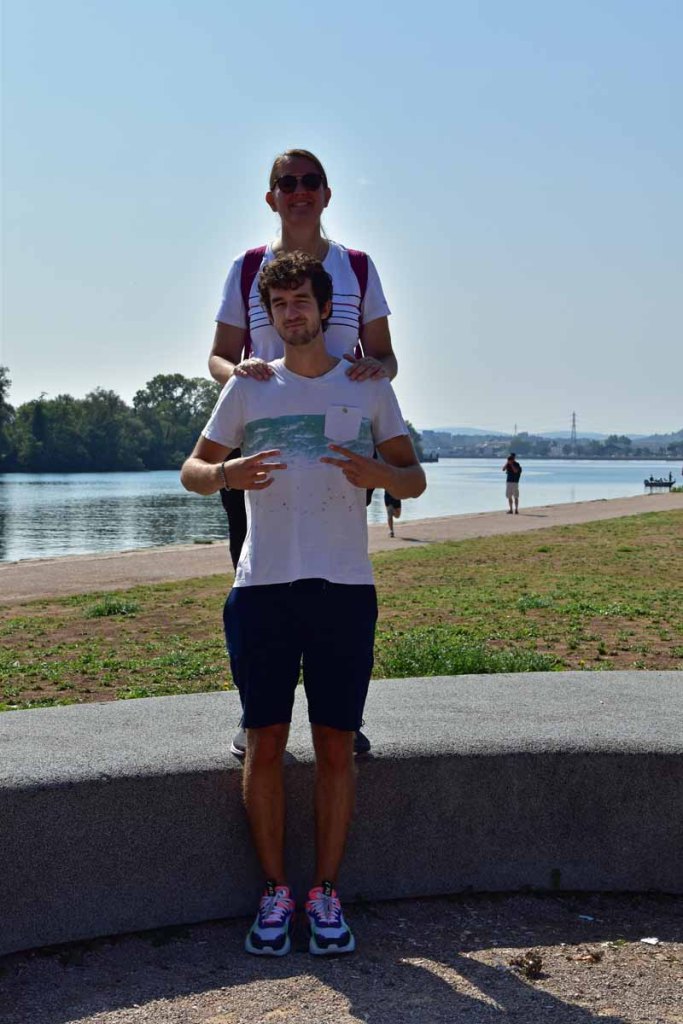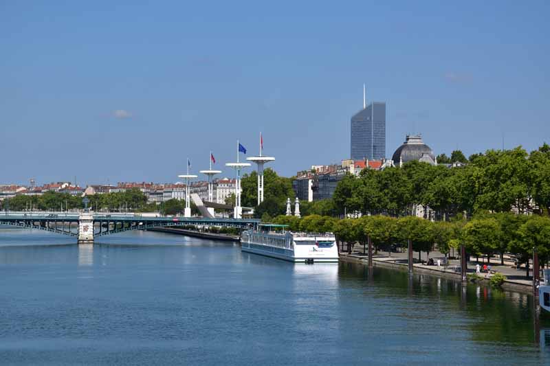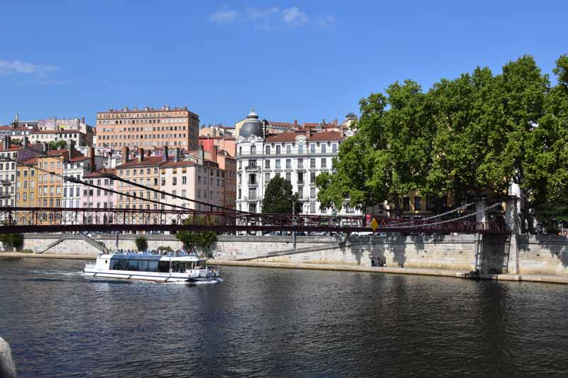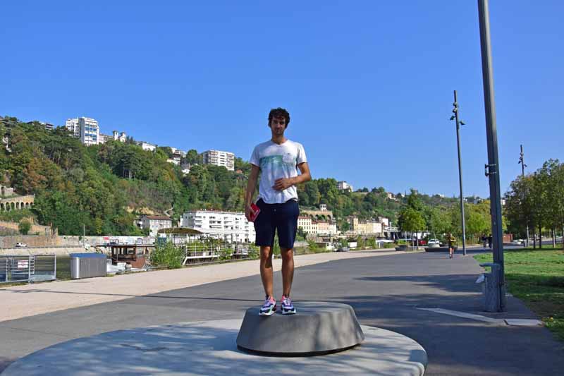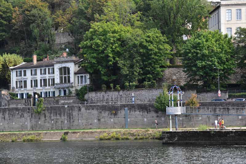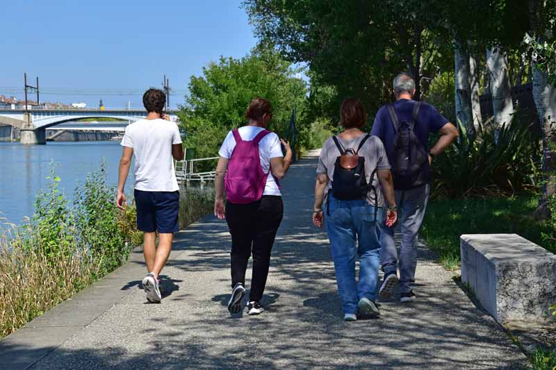 Nous avons ensuite traversé le pont Raymond Barre qui enjambe le Rhône (sur lequel nous avons fait une petite pause car la chaleur était vraiment intense), ce qui nous a permis de rejoindre le quartier de Gerland. Mathieu aurait aimé nous entraîner jusqu’au stade du même nom mais nous n’avons pas cédé car nous avions déjà bien marché et nous n’étions qu’à la moitié de notre parcours ! Le quai qui longe le Rhône est moins urbanisé et beaucoup plus vert que le côté Saône.