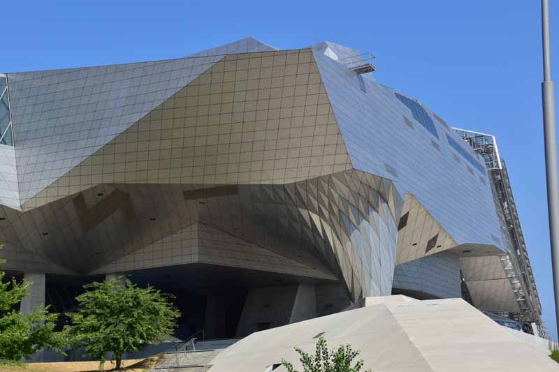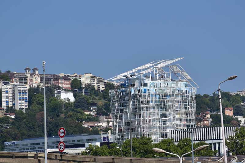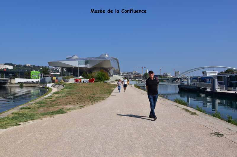 Entre la gare de Lyon Perrache et la pointe sud de la Presqu’île, ce quartier est devenu depuis 2003 et après une vaste opération d’aménagement, le symbole du progrès à la lyonnaise. Nous avons suivi le quai Rambaud le long de la Saône, l’une des vitrines de la reconversion architecturale du quartier. C’est joli, c’est vert et l’on a du mal à imaginer que l’on se promène dans l’une des plus grandes villes de France ! Nous avons découvert des édifices très particuliers tels ce « cube orange » surnommé aussi « la mimolette » et ce « rectangle vert » (siège de la chaîne Euronews)… Au bout du quai Rambaud, la Saône et le Rhône se rejoignent face au Musée des Confluences. Ce musée anthropologique à l’architecture audacieuse a été inauguré en 2014.