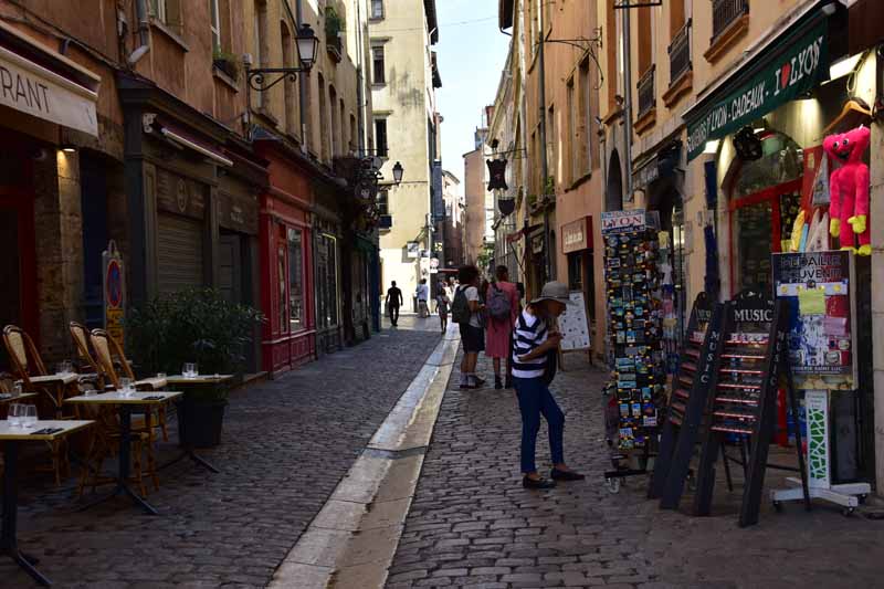 Le métro nous dépose au pied de la cathédrale St Jean, au cœur du Vieux Lyon. Ce quartier, pris en étau entre la rive droite de la Saône et la colline de Fourvière, se distingue par ses ruelles et ses demeures ocre rose qui marient le Moyen Age et la Renaissance.