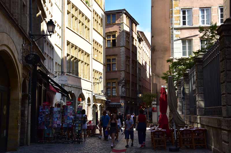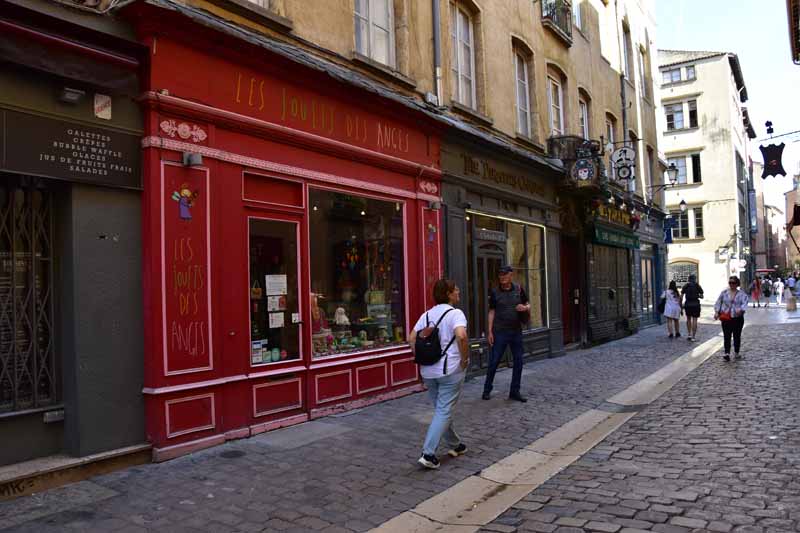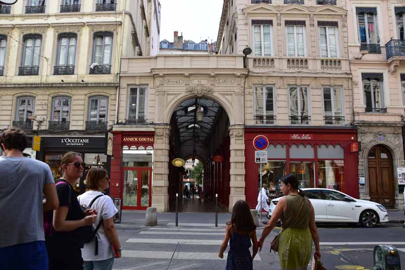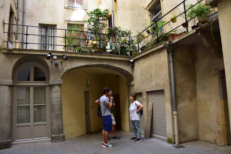 L’une des caractéristiques du Vieux Lyon sont ses nombreuses traboules. Les traboules, du latin trans ambulare (passer à travers), sont des raccourcis qui relient une rue à l’autre à travers un ou plusieurs immeubles. C’est vraiment une curiosité que nous ne voulions pas manquer et en continuant notre balade dans la rue St Jean, nous avons pu pénétrer dans les plus connues.