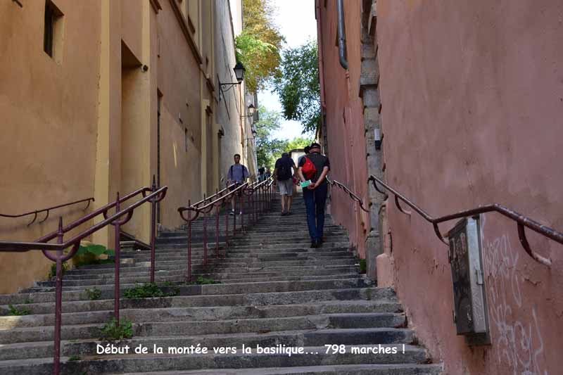 Après avoir déambulé dans les coins et les recoins, nous avons décidé de monter à la Basilique Notre Dame de Fourvière… à pied !