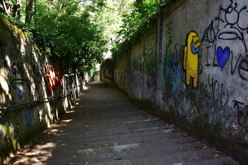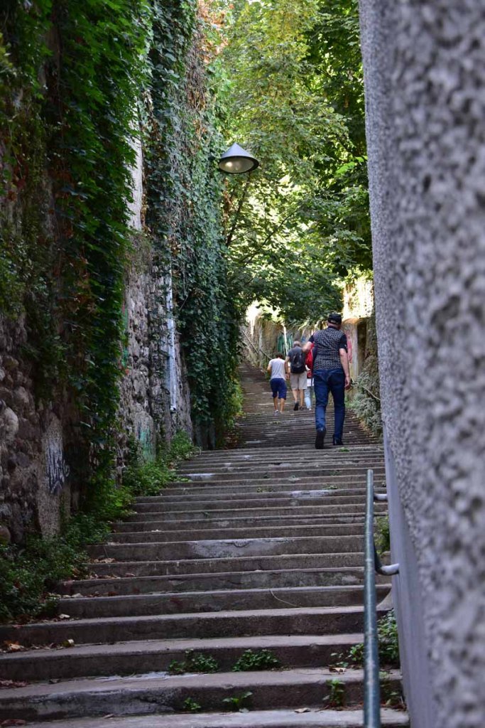 Nous avons tout d’abord emprunté la montée des Carmes-Déchaussés et ses 238 marches puis continué par la montée Nicolas de Lange et ses 563 marches, quelques 798 marches en tout ! Nous avons mis du temps (surtout moi et Blandine, les autres nous ont attendus un peu…) mais quelle joie d’arriver en haut ! Il faut dire qu’on n’en voyait pas le bout…