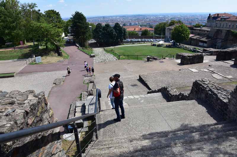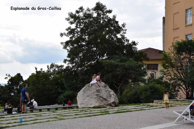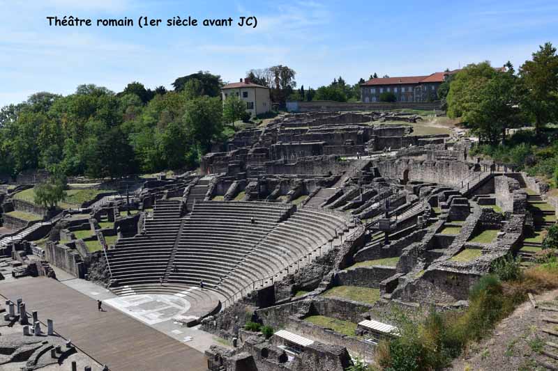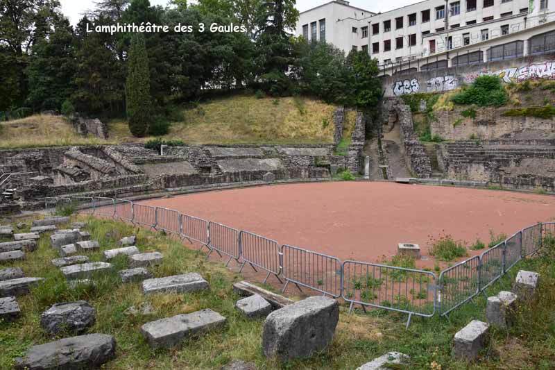Après avoir admiré ce magnifique mur peint, nous avons flâné suivant nos envies et les points d’intérêt… La « maison des canuts » qui fait revivre les traditions, le « gros caillou » gros bloc quartzite poussé par le front d’un glacier du quaternaire, la « cour des voraces » lieu de réunion d’une confrérie de canuts pour arriver finalement à « l’amphithéâtre des 3 Gaules » lieu de supplice de Sainte Blandine !