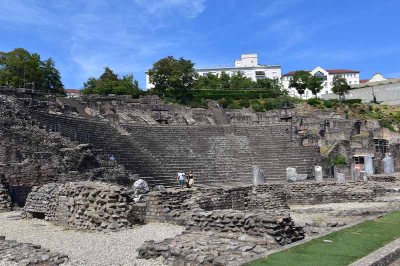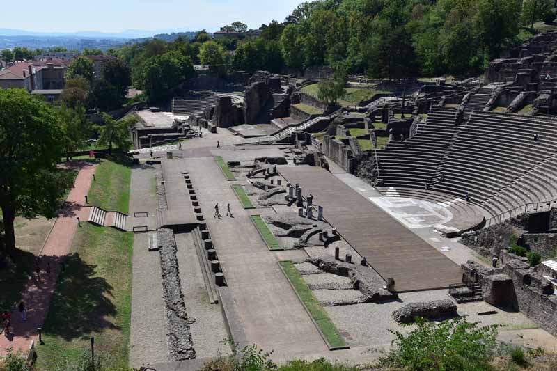 Pas très éloignés se trouvent les théâtres romains de Lugdunum, mis au jour à partir de 1933. De dimensions analogues à ceux d’Arles et d’Orange, le grand théâtre est le plus ancien de France. Aujourd’hui, le site accueille le festival d’été des Nuits de Fourvière. Nous avons traversé le site, fort heureusement en descente, et nous avons pris le célèbre funiculaire pour rejoindre le Vieux Lyon. Mais la journée n’était pas finie, loin de là…