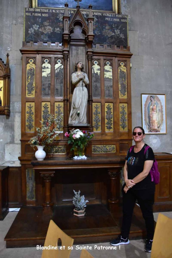 Nous avons terminé notre périple par la place de l’Opéra et épuisés, nous avons sauté dans le métro puis dans le Tram qui nous a déposés à l’arrêt Ste Blandine… Petite visite dans « son » église (nous en avons profité malgré notre fatigue car elle n’était pas ouverte habituellement) et retour à l’hôtel heureux après nos 12km parcourus sous la grosse chaleur !