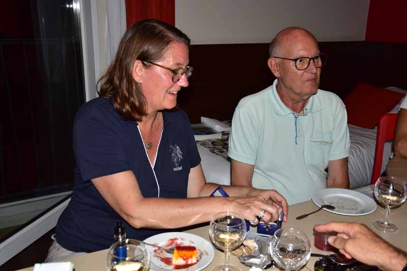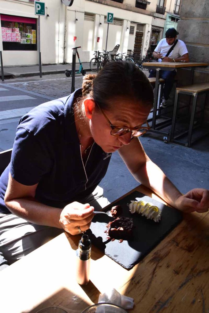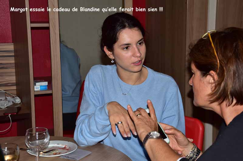 Une petite faim et une grosse fatigue nous ont incités à faire un stop dans un petit restaurant et comme nous étions le 30 août, Bénédicte a eu cette adorable idée d’offrir un petit dessert à sa sœur bien-aimée qui a même fait semblant de souffler des bougies qui n’existaient pas !