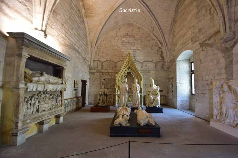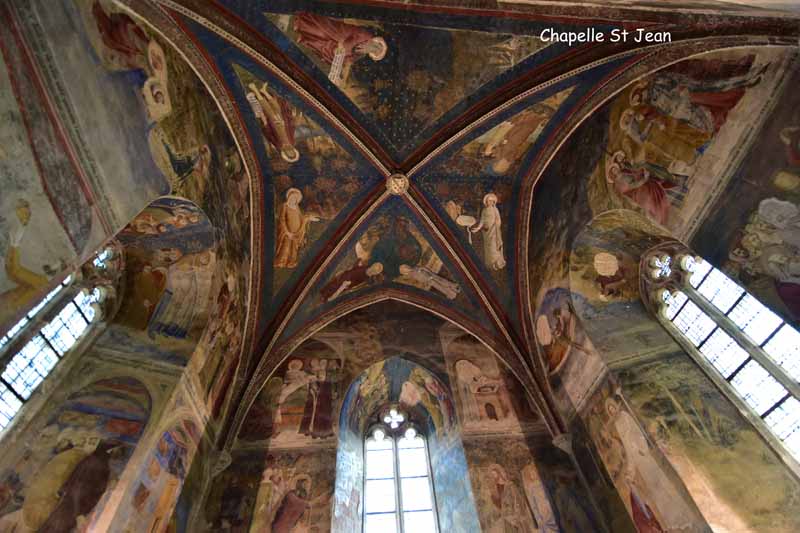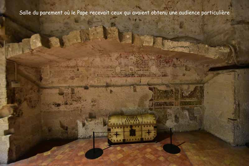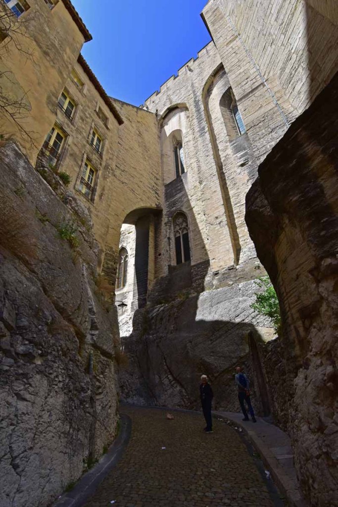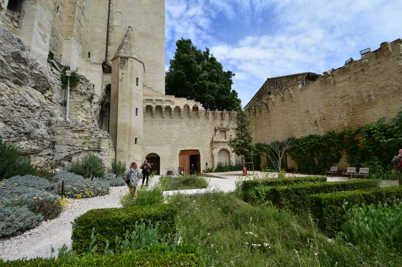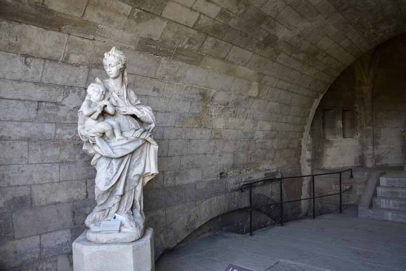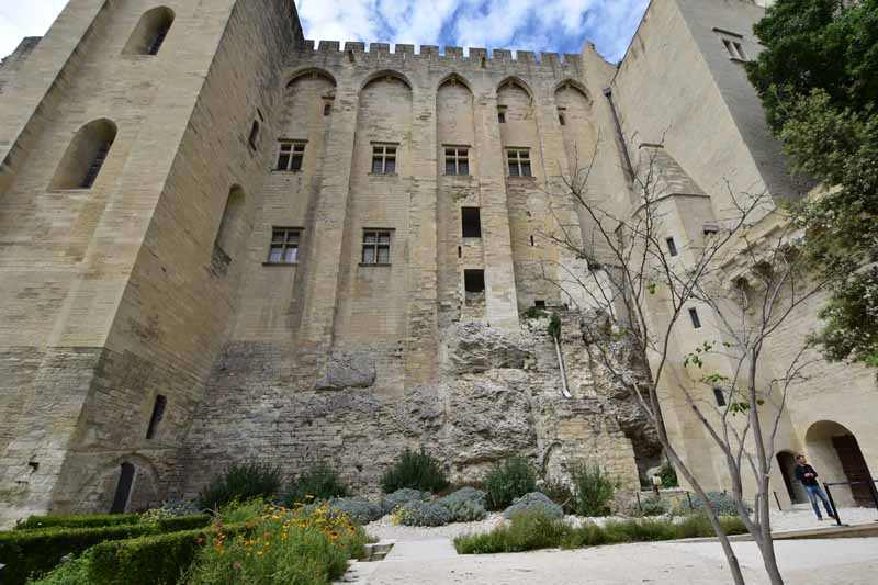 Le Palais des Papes, résidence des souverains pontifes, édifié à partir de 1335, en moins de 20 années, est principalement l’œuvre de 2 papes bâtisseurs : Benoît XII et son successeur Clément VI. Il présente 25 lieux de visite et des décors de fresques inestimables de l’artiste italien Matteo Giovannetti (vous pourrez admirer ses fresques dans la chapelle St Jean, on aurait bien aimé vous en montrer plus mais les photos étant interdites, c’est le seul endroit où Blandine a pu se soustraire au regard des cerbères !!!).