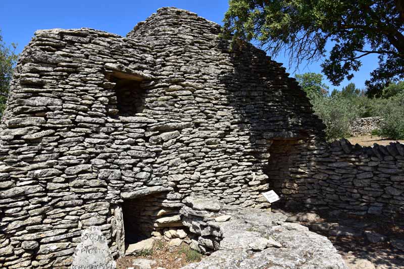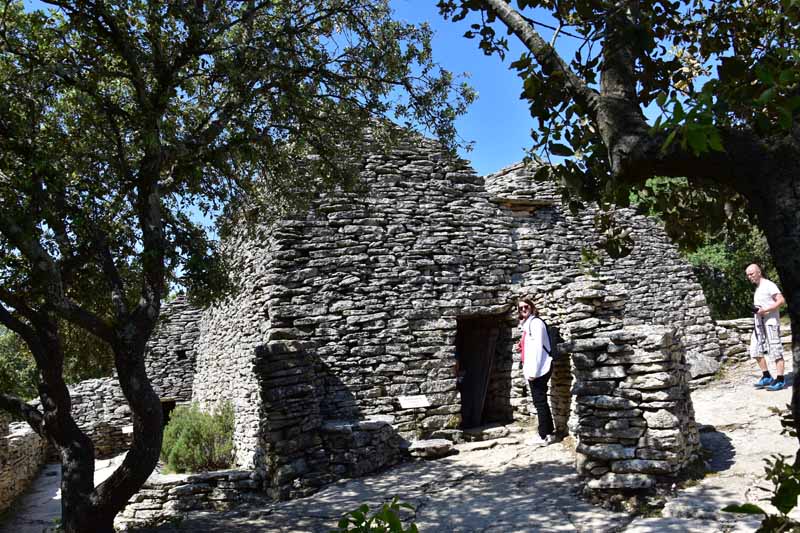 Aujourd’hui donc, nous avons commencé la journée par la visite du Village des Bories – curieuses cabanes de pierres sèches, certaines d’entre elles n’étaient que des remises à outils ou des bergeries, mais beaucoup ont été habitées depuis l’âge du fer jusqu’au 18ème siècle – balade qui nous a enchantés…