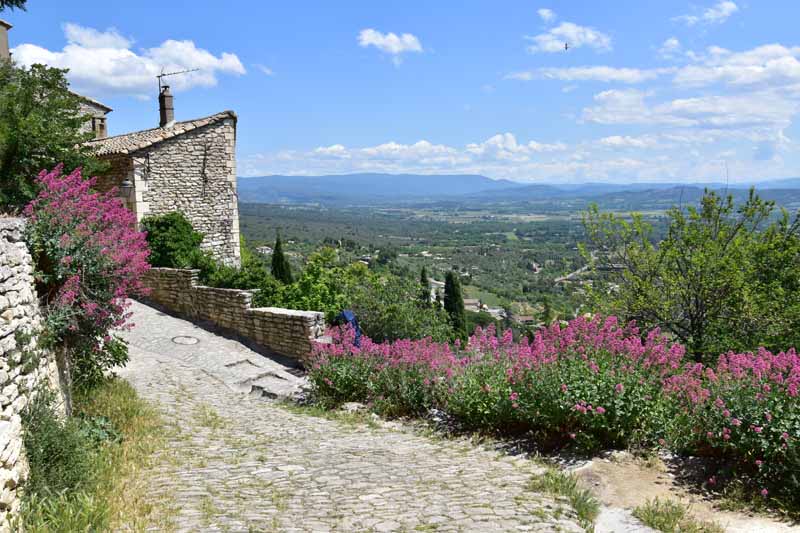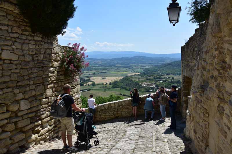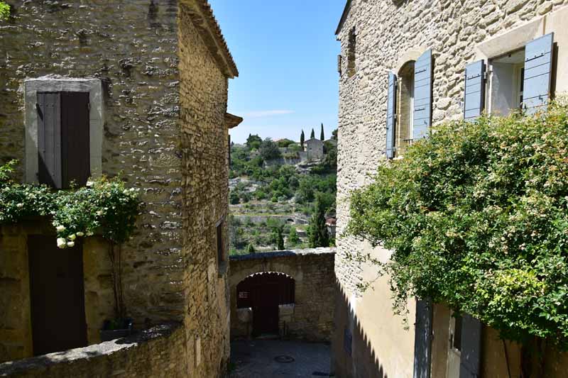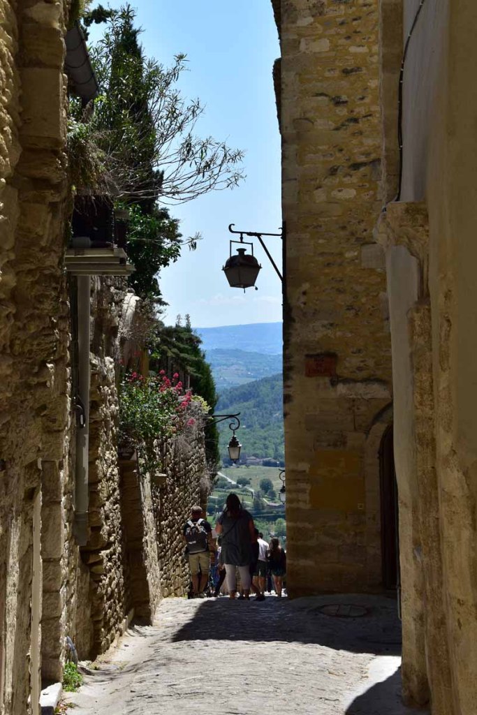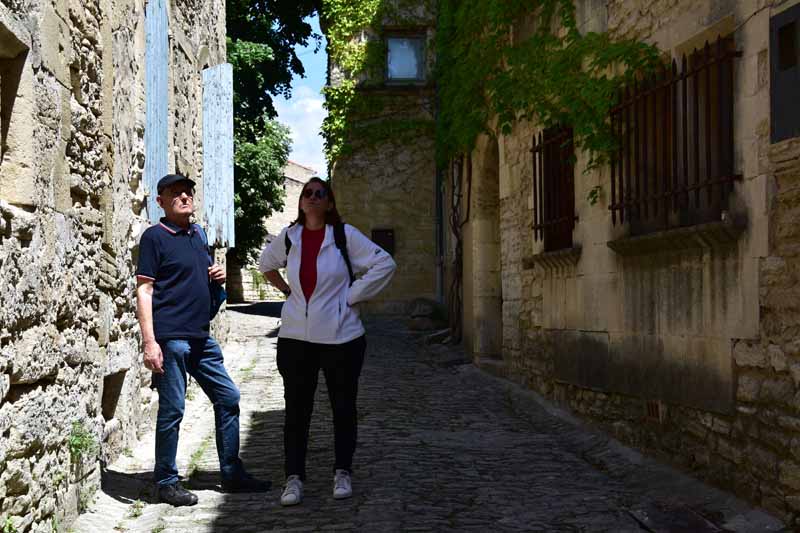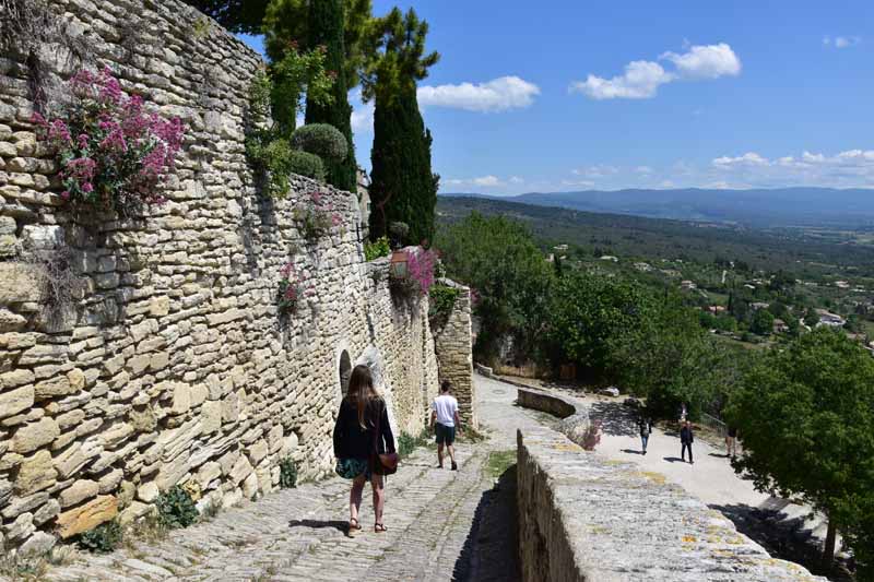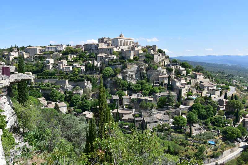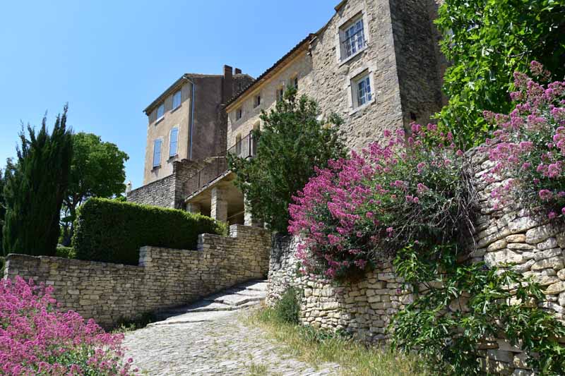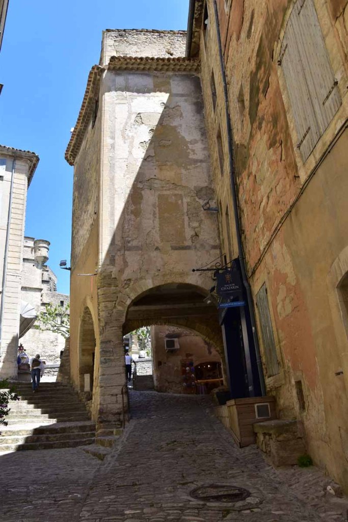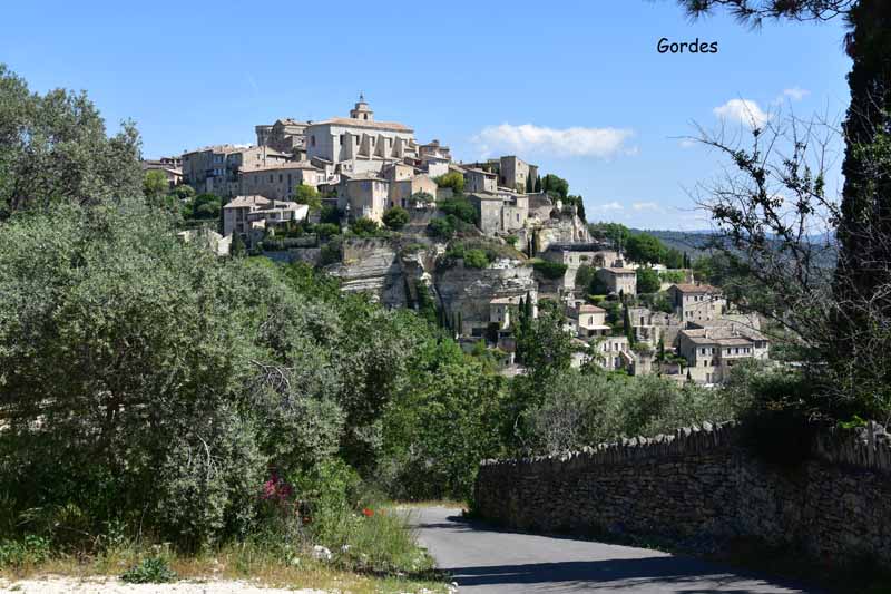 A quelques encâblures, se trouve le village très réputé de Gordes, avec ses « calades » (ruelles pavées bordées de caniveaux) et son château bâti en 1525. Il est classé dans les « plus beaux villages de France ». Gilbert a lu très récemment qu’il avait été élu le plus beau village du monde par un organisme américain ce qui nous laisse un peu dubitatif. Bien qu’il nous ait plu, nous estimons en avoir vu de plus beaux pour notre part, que ce soit en France, en Italie ou en Espagne… mais ça, c’est très subjectif !!!