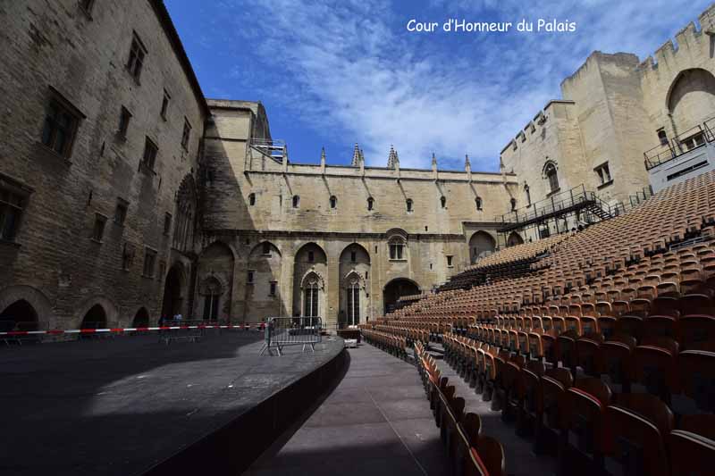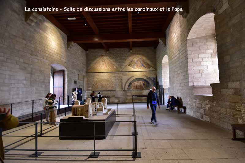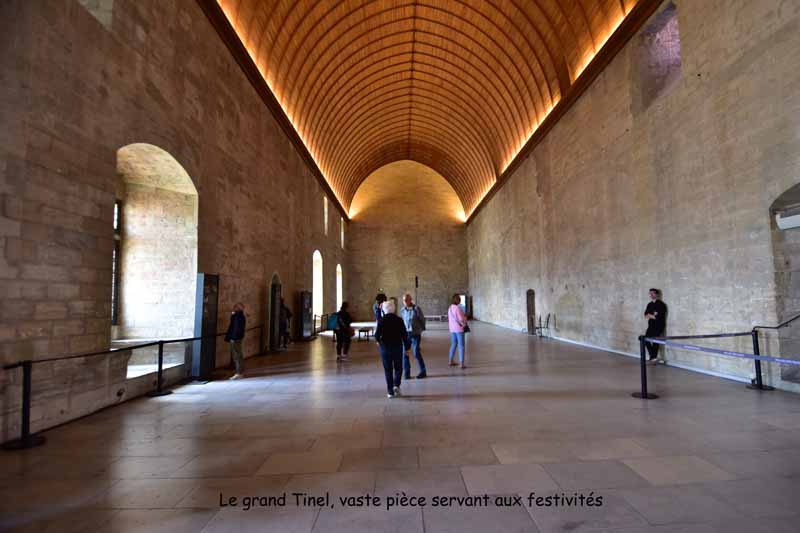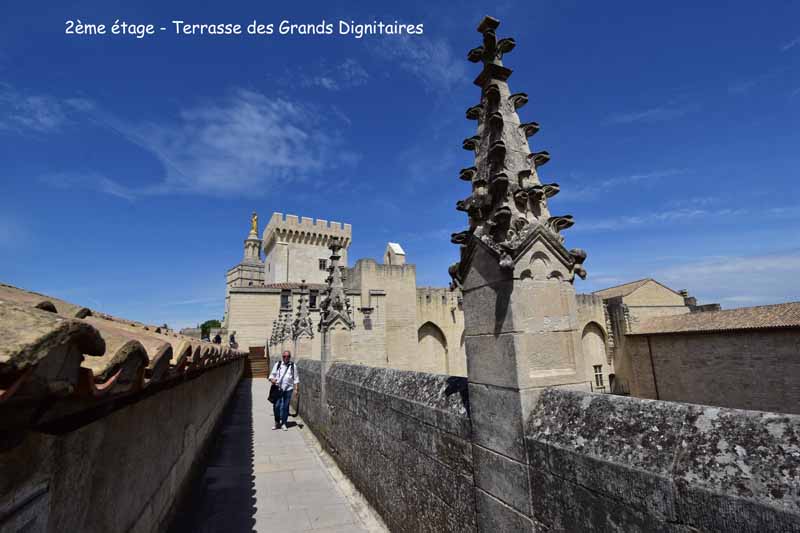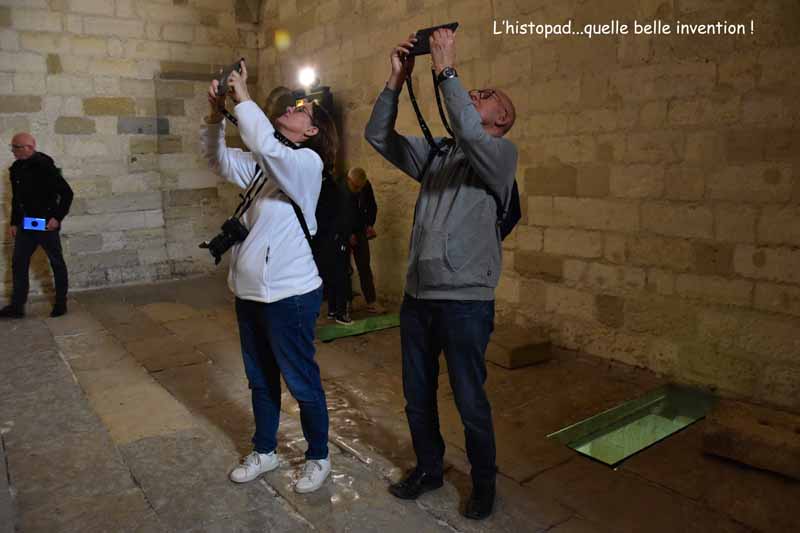 Nous avions réservé notre visite du Palais des Papes, à 13h00 car on ne peut y accéder qu’aux heures pleines. A l’heure dite, nous avons pris ce bel outil qu’est l’histopad, tablette tactile qui, au fur et à mesure de l’avancée de la visite, vous conte l’histoire du lieu où vous vous trouvez et vous offre une reconstitution en 3D de l’endroit à l’époque, c’est à dire, pour ce qui nous concerne, au 14ème siècle.