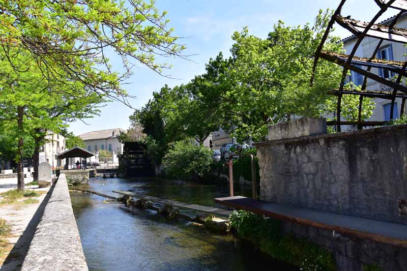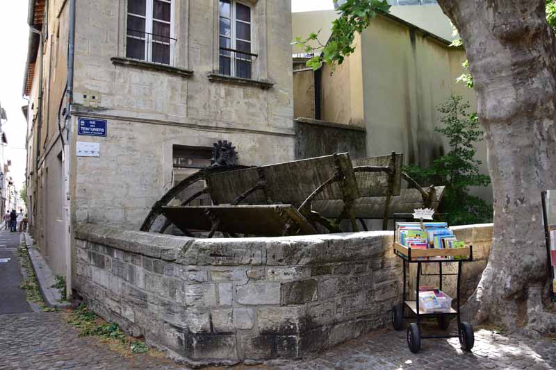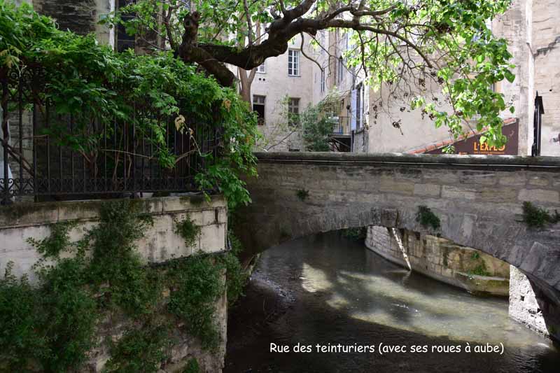 Pour terminer, nous avons suivi un des itinéraires préconisé sur notre plan de ville qui nous a conduit dans la vieille ville jusqu’à la rue des teinturiers longeant la Sorgue, avec ses roues à aube, l’un des endroits les plus pittoresques de la ville.