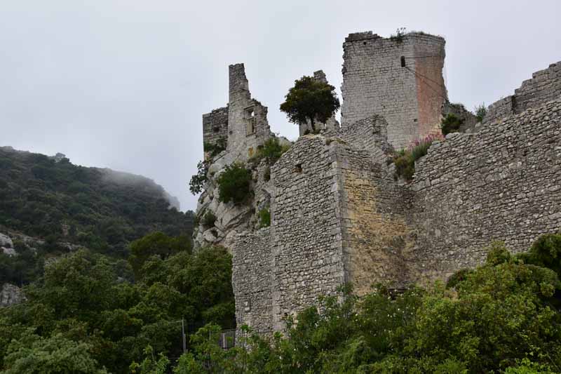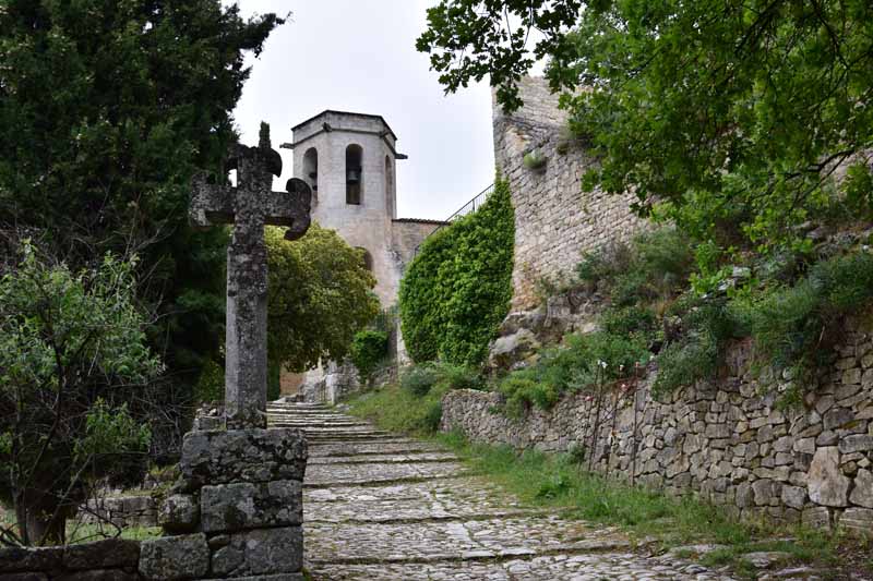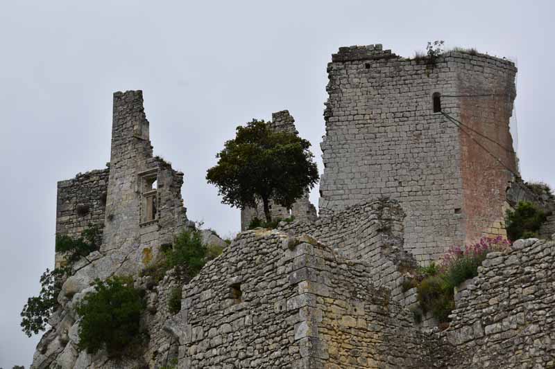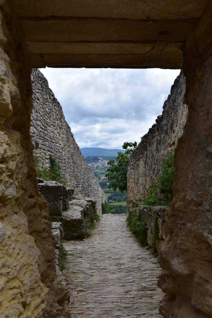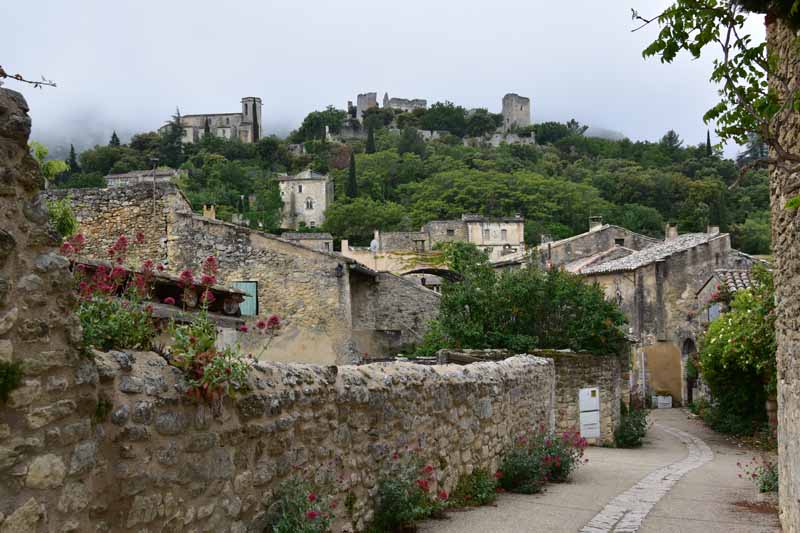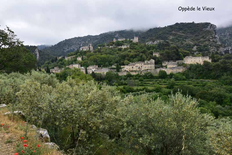 Aujourd’hui, nous sommes heureux de notre journée car bien que sans grand soleil, nous n’avons pas eu de pluie, voire même quelques taches de ciel bleu ! Nous avons décidé d’aller faire un tour à Oppède le Vieux, situé sur un éperon rocheux, c’est une ancienne place forte et jadis prospère comme en témoignent quelques belles demeures des 15ème et 16ème siècles. Elle a été abandonnée en 1912 pour une installation dans la plaine. Nous sommes montés depuis le parking visiteurs par un beau chemin bien aménagé jusqu’aux ruines du château. Nous avons aimé flâner dans ses calades pentues…