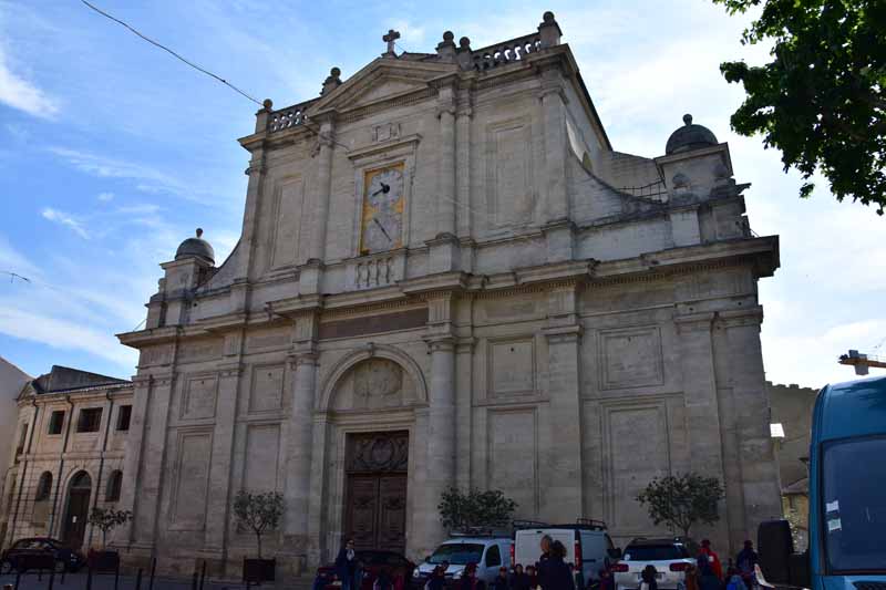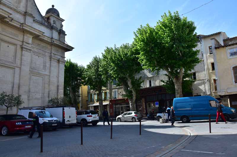 Nous sommes tout de même partis à la découverte de cette jolie petite ville qu’est l’Isle-sur-la-Sorgue. Elle conserve la mémoire de son passé, lorsque les meuniers, les tisserands et les tanneurs en faisaient une petite cité florissante. Seules demeurent 17 roues à aube qui en compta jusqu’à 66. Aujourd’hui la ville vit grâce à ses antiquaires et ses galeries d’art qui ont porté sa réputation bien au-delà des frontières régionales et nationales. Les bras de la Sorgue, les grands platanes, les petits ponts, les roues à aube donnent à cette localité un aspect frais où il est agréable de chiner… sauf que nous, on n’aime pas chiner et on n’aime pas la foule, c’est pourquoi nous avions choisi un jour de fermeture des antiquaires ! Nous avons été surpris par la collégiale Notre Dame des Anges du 17ème siècle et dont l’intérieur baroque est richement décoré.