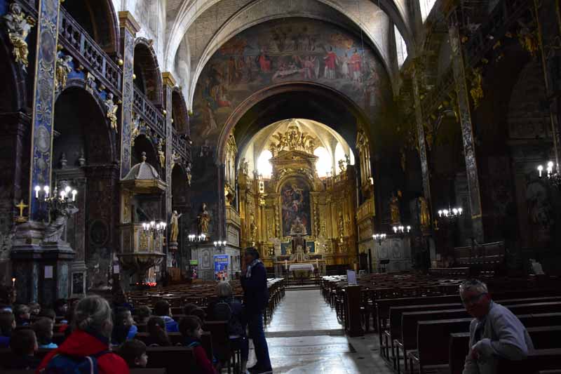 La cathédrale dont la construction débute en 1165, a connu des événements marquants, comme les deux conciles de 1245 et de 1274, le couronnement du Pape Jean XXII en 1316, la messe en l’honneur du mariage royal entre Henri IV et Marie de Médicis en 1600… A l’intérieur, une horloge astronomique datant du 14ème siècle a hélas été vandalisée en 2013 et hélas ne sonne plus les heures !