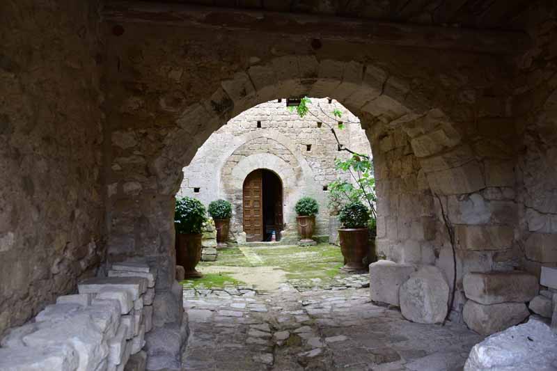 Nous avons repris la route en direction de Lacoste en faisant un stop à l’Abbaye de St Hilaire, occupée par les carmes du 13ème au 18ème siècle. Aujourd’hui propriété privée ouverte à la visite par ses propriétaires, nous avons pu admirer, adossé à la tour clocher du cloître les vestiges d’un pigeonnier comptant parmi les plus anciens de Provence.