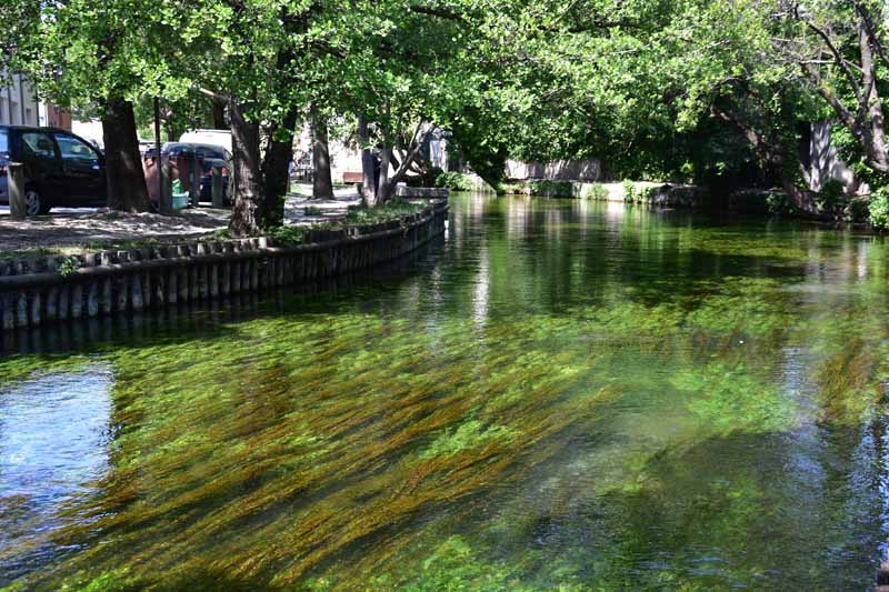 De retour à la maison pour se sustenter et se reposer un peu, nous avons hésité à repartir tant le vent était fort. On s’est quand même décidé sur le coup de 18h pour aller faire un tour à Fontaine-de-Vaucluse et bien nous en a pris car les touristes avaient déserté les lieux et le vent s’était calmé… Bon plan !