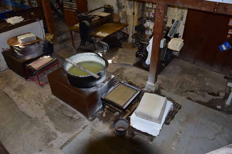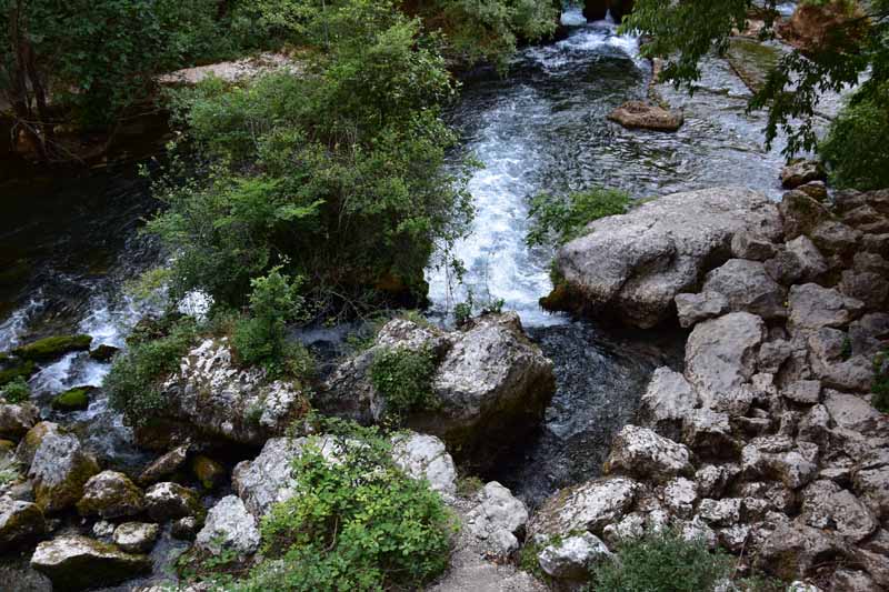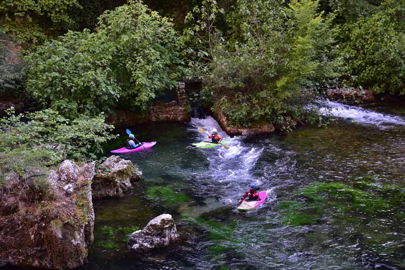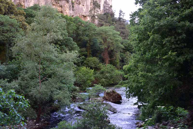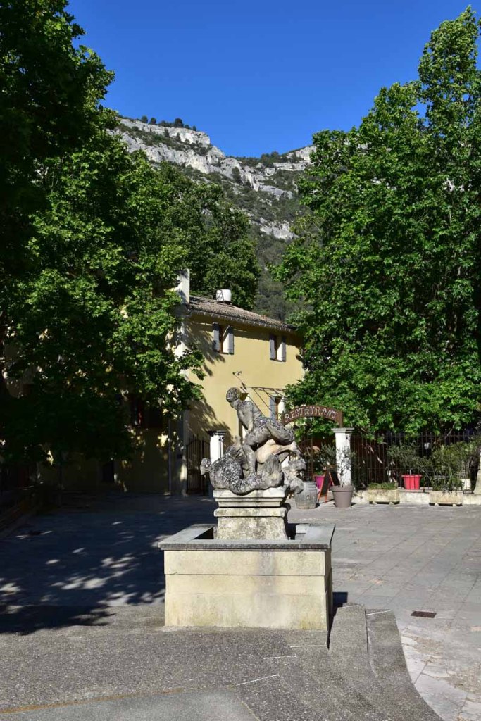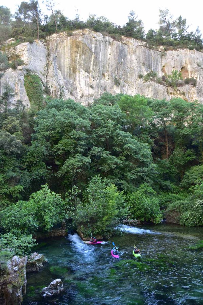 Nous avons flâné dans les rues du village situé au fond d’un cirque rocheux aux parois impressionnantes. Nous nous sommes arrêtés au moulin à papier (dont nous avions encore un souvenir assez vivant après plus de 40 ans !). Puis nous sommes partis jusqu’à la résurgence de la Sorgue dont on ne connaît toujours pas aujourd’hui la provenance. En fait, il faut y venir quand les eaux sont très hautes et que la Sorgue d’un profond vert émeraude se déverse du gouffre, ce qui n’était pas le cas aujourd’hui ! Mais peu importe, la balade était vraiment sympa…