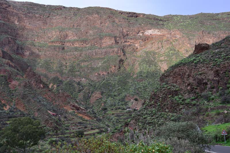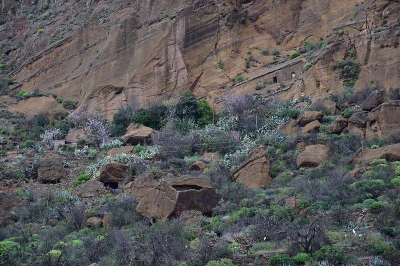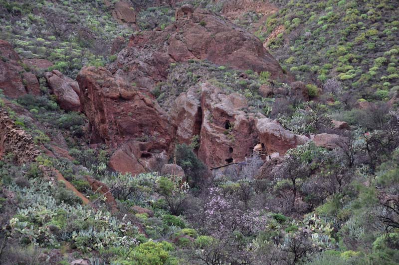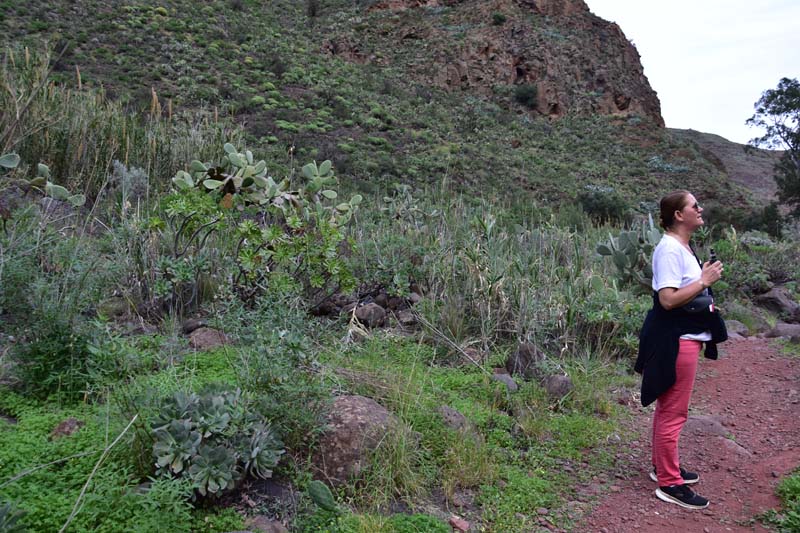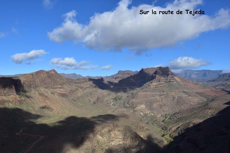 Ce matin, à peine réveillés, nous avons directement enfilé nos vêtements et, après un bon petit déjeuner, nous sommes partis pour découvrir le Barranco de las Vacas… Au passage, nous remercions Mireille qui nous a parlé de ce site et sans laquelle nous n’aurions même pas su qu’il existait… Il n’est pas mentionné dans les guides et pourtant, il y a du monde pour aller le visiter ! Le bouche à oreille doit bien fonctionner.