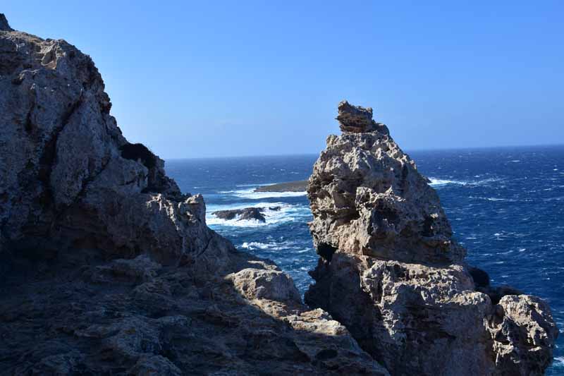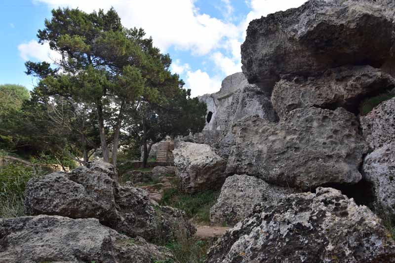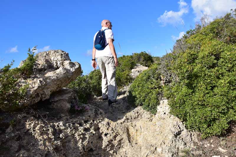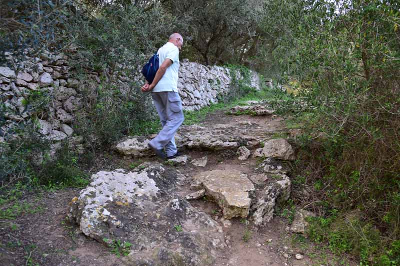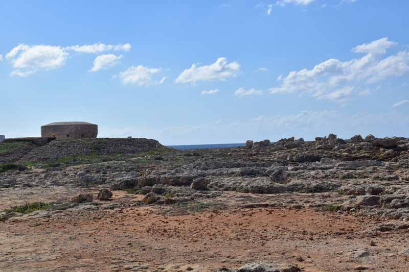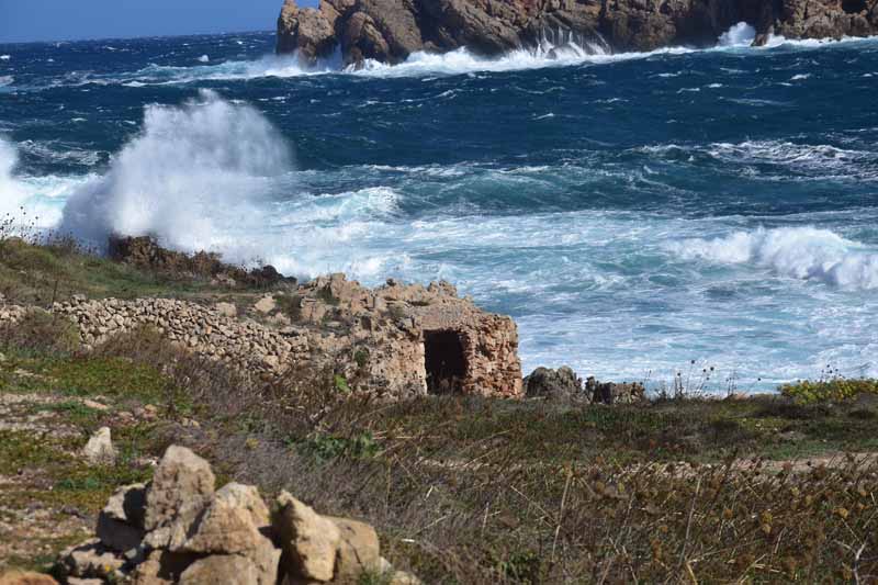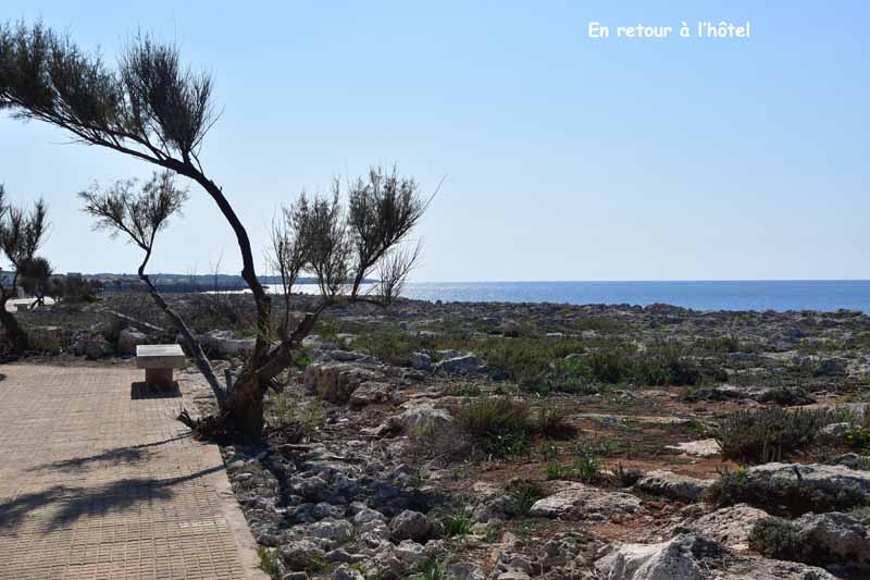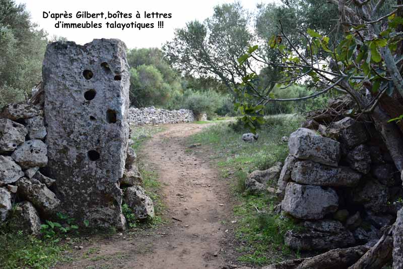 Nous sommes partis un peu plus loin en empruntant une toute petite route jusqu’à Torretrencada. C’est un village préhistorique qui a été habité jusqu’à la fin de l’époque romaine. On peut y voir l’une des plus belles taulas de Minorque. Nous avons beaucoup apprécié la balade au milieu d’oliviers sauvages… Nous étions tout seul sur le site !