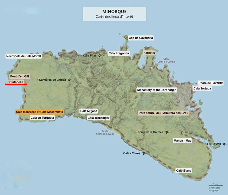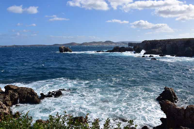 Pour nous rendre à Pont D’en Gil, il faut contourner Ciutadella et nous nous sommes retrouvés de l’autre côté du port de plaisance avec le Castell de Sant Nicolau en point de mire. Là aussi, il y a une belle promenade le long de la mer avec des maisons superbes ! Nous avons suivi la route en nous arrêtant à tous les miradors et ce fut un réel plaisir.