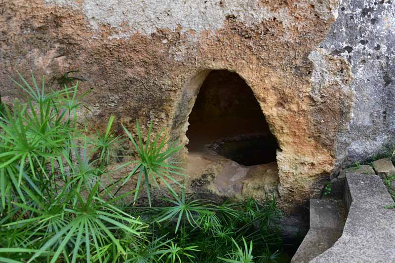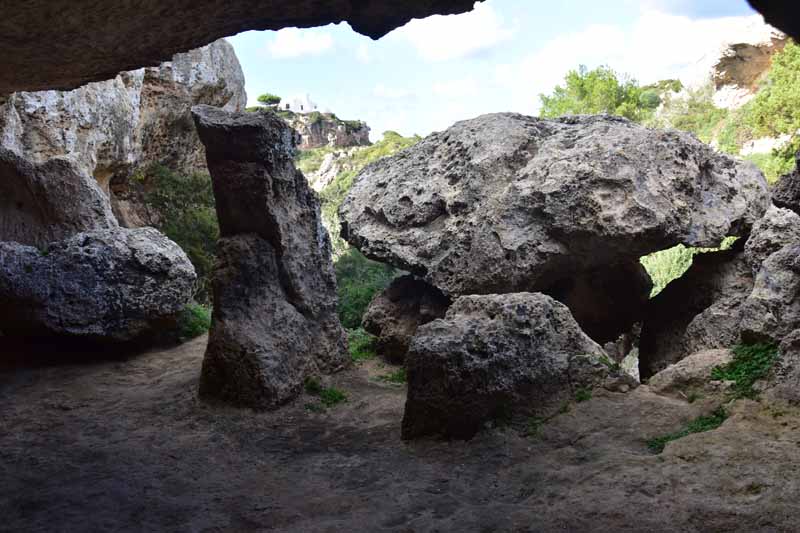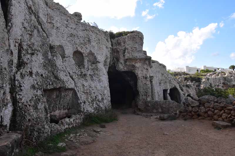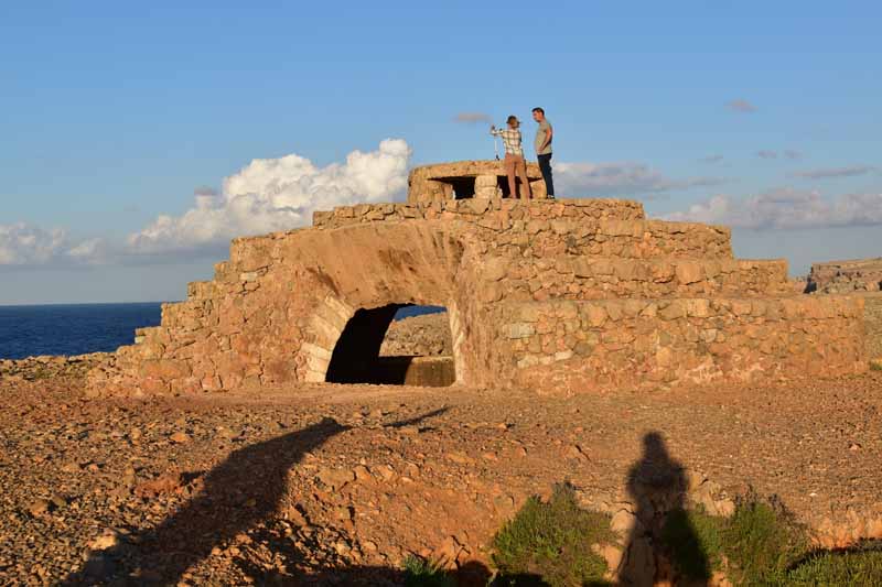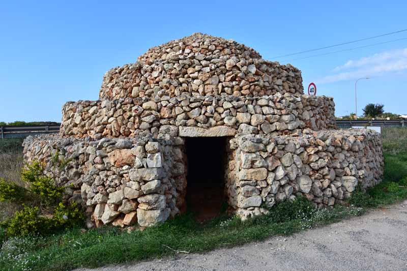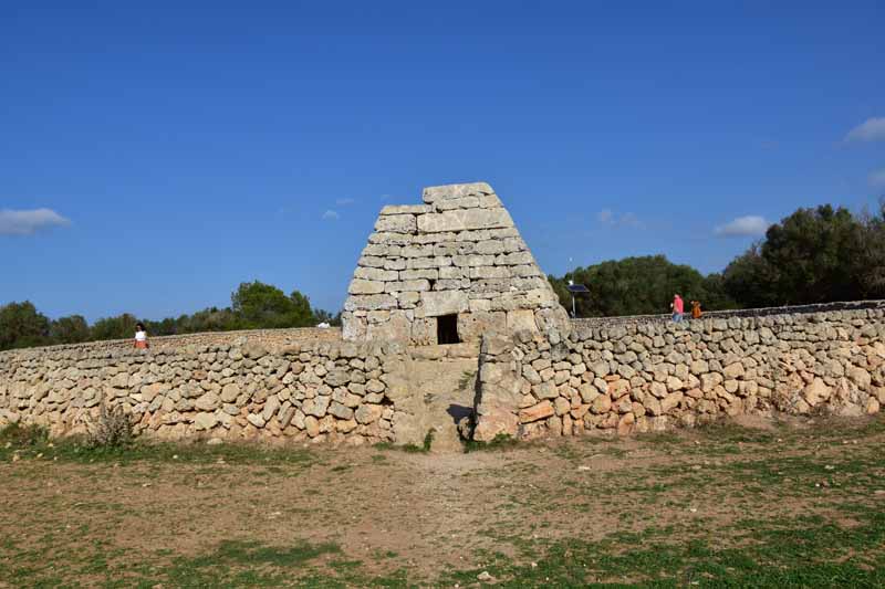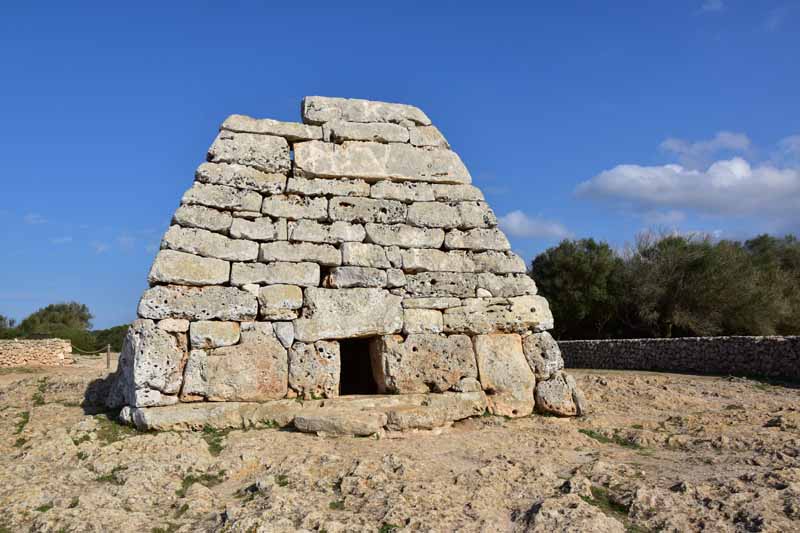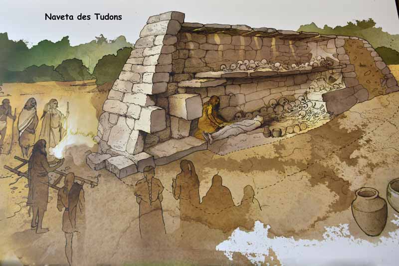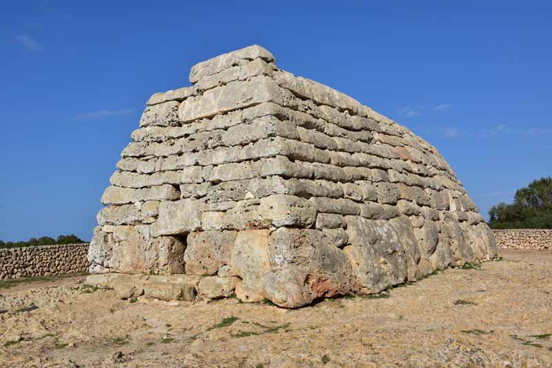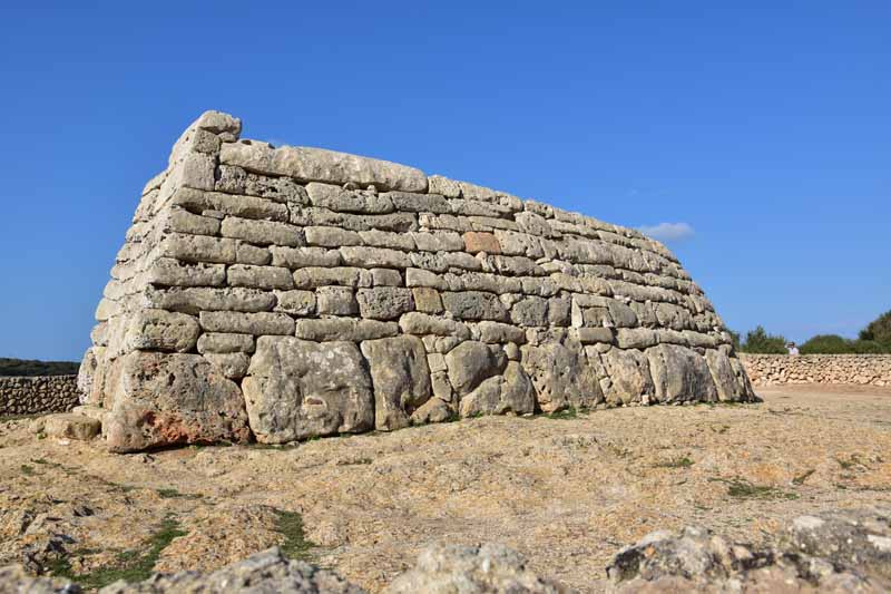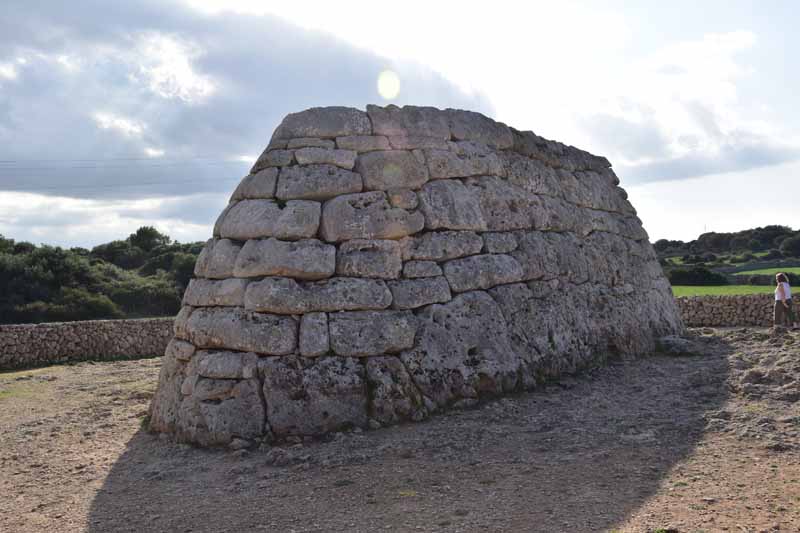 Le premier site que nous avons visité est la « Naveta des Tudons ». C’est le monument funéraire le plus réputé de Minorque. Ce type de tombe ne se trouve que sur cette île. Elle est construite sur le principe de la technique dite cyclopéenne, c’est-à-dire avec des pierres de dimensions modérées assemblées à sec, sans ciment ni mortier. Les fouilles archéologiques effectuées dans les années 1960, avec la participation de l’archéologue minorquine María Lluïsa Serra, ont permis de découvrir des squelettes de cent individus des deux sexes et de tout âge parsemés çà et là, la majorité d’entre eux ayant été datés du IXe siècle av. J.-C.